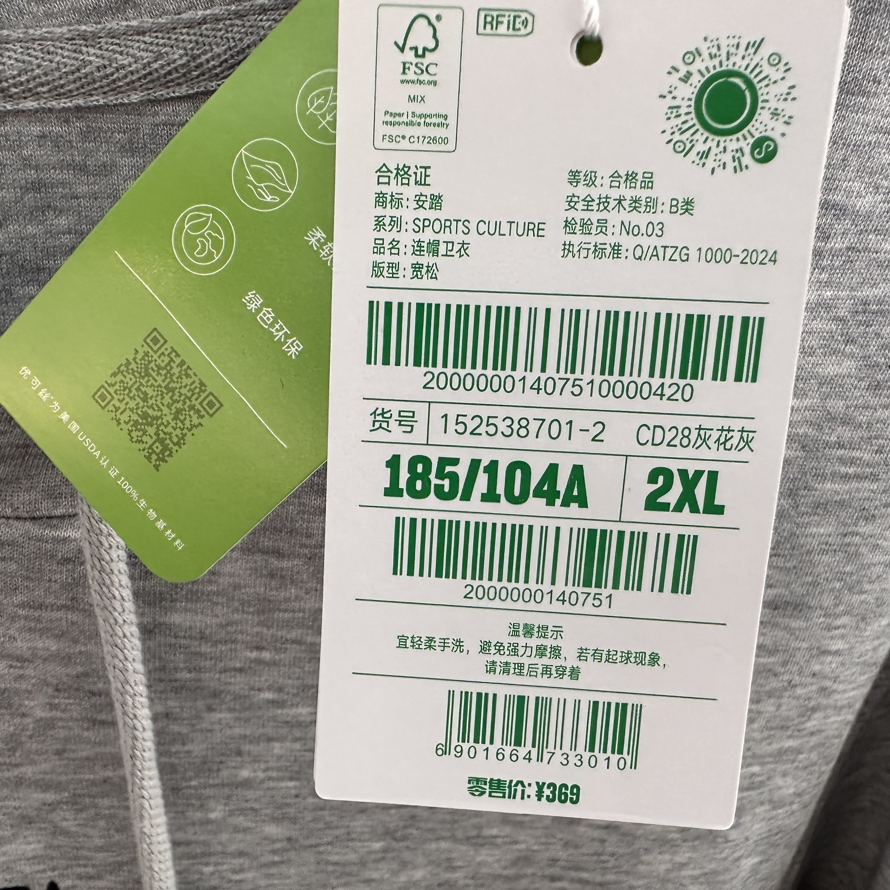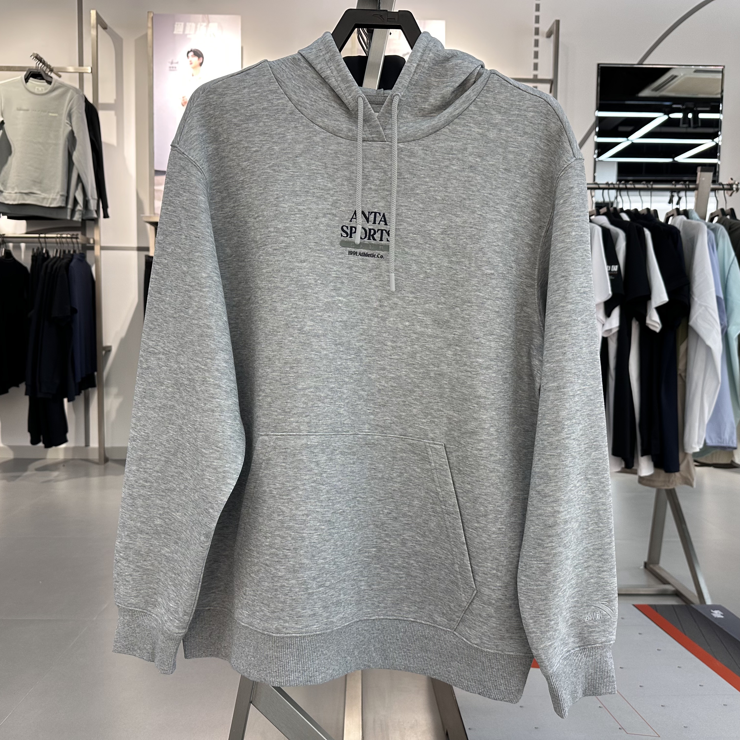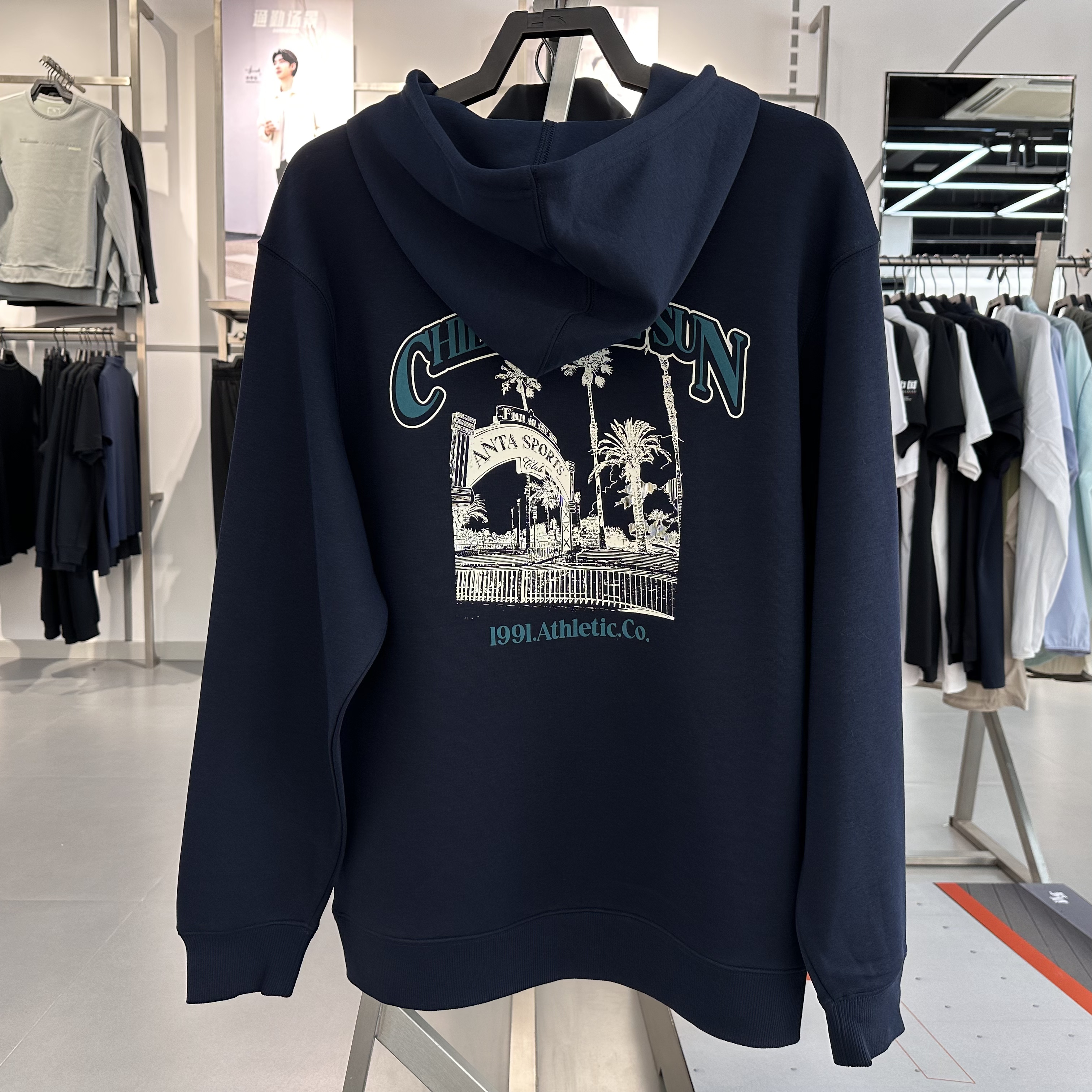 【本周特价】安踏休闲连帽卫衣男秋季新款美式立体刺绣宽松套头上衣152538701