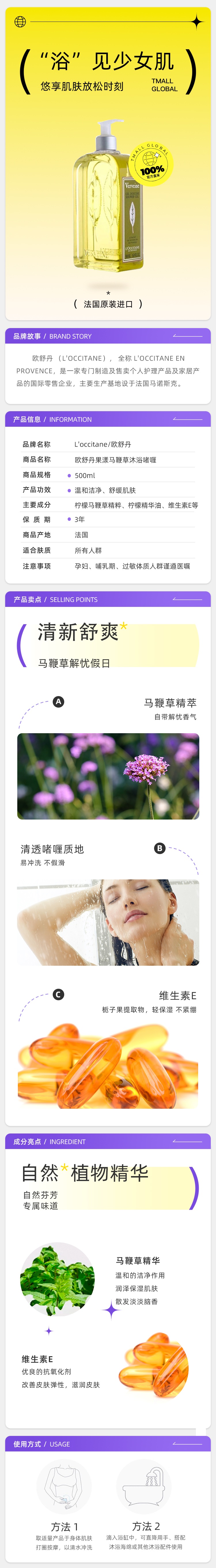 【保税仓】L'OCCITANE欧舒丹按压款马鞭草沐浴露500ML