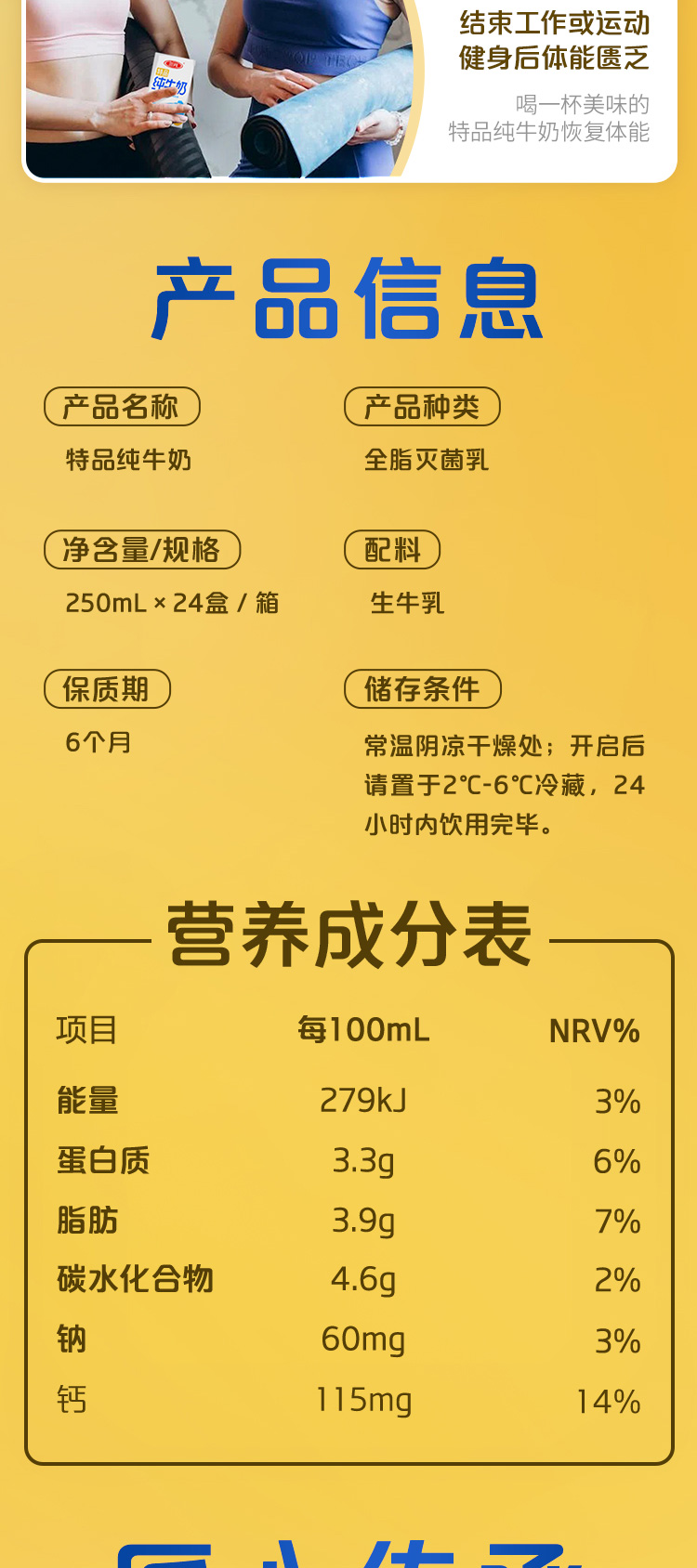 【自提-常温】特品方白全脂纯牛奶250ml*24