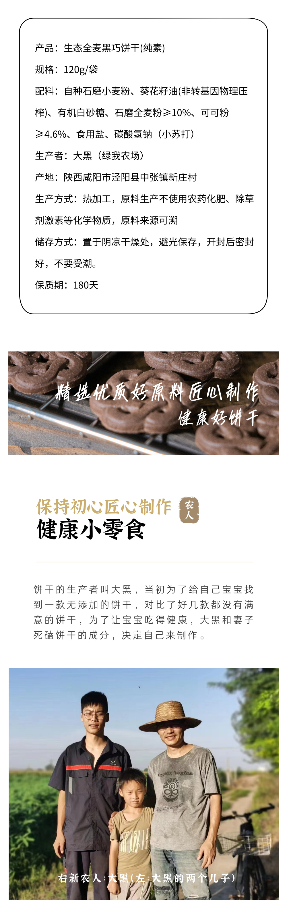 生态全麦黑巧饼干(纯素) 120g/袋 | 合作农友生产,产自陕西咸阳,生产者:大黑 &【公平贸易农人定价】