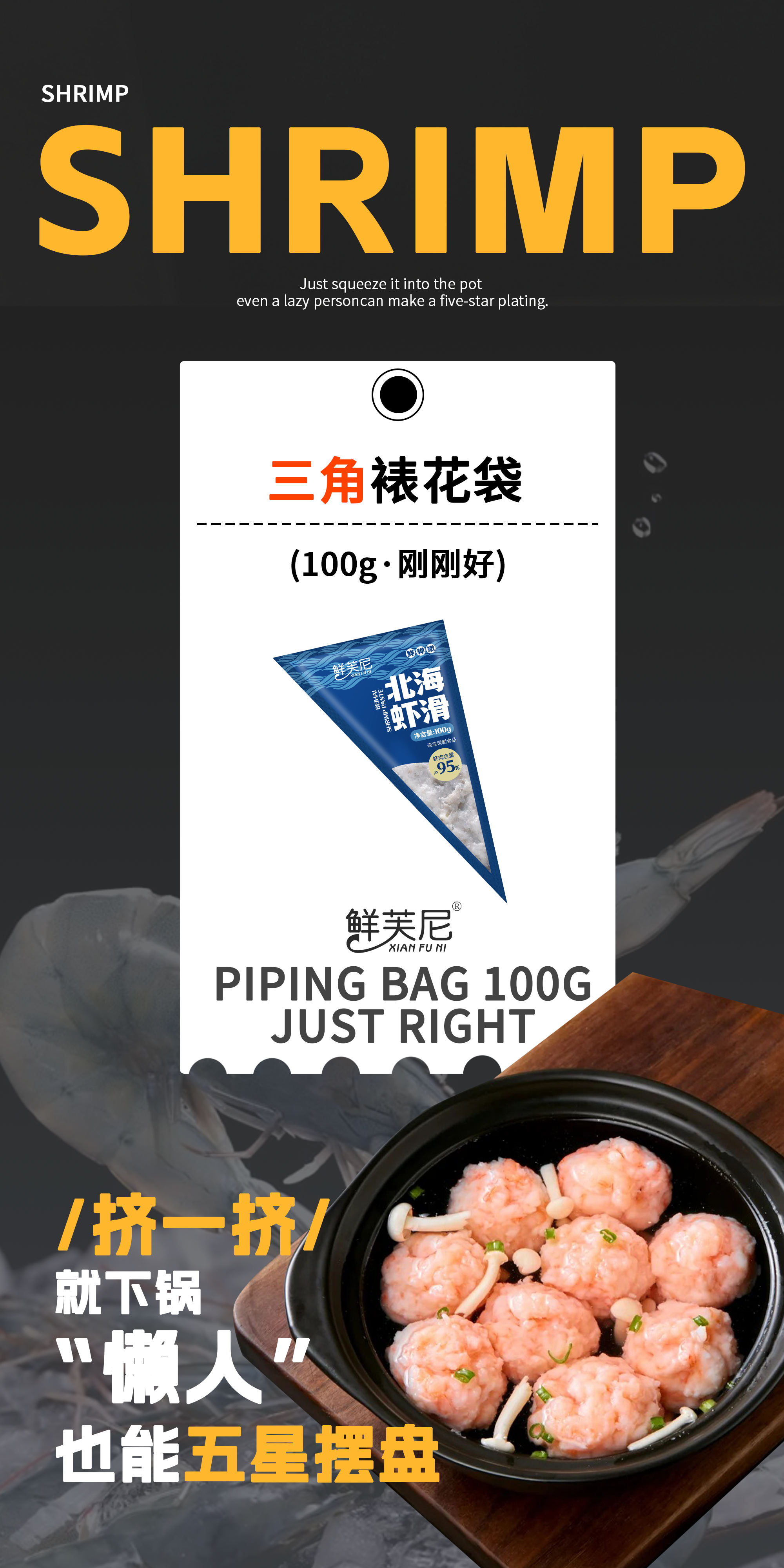 便携式的三角包装就像蛋糕的裱花袋,挤虾滑更方便、卫生