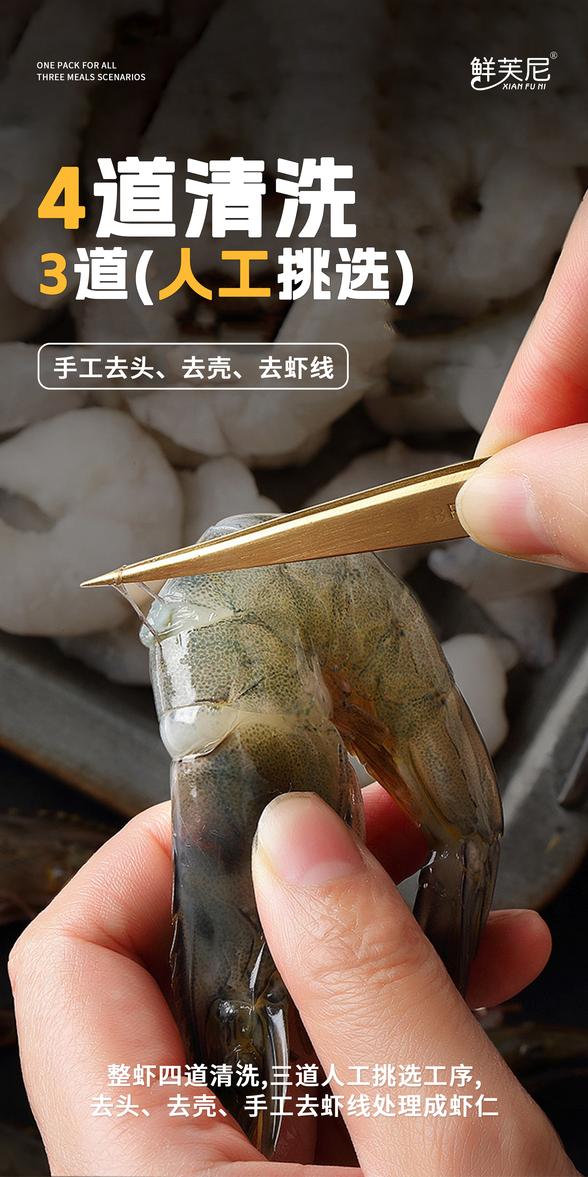 1 袋≈15 只活虾,去头去壳去虾线,每口都能嚼到饱满虾肉