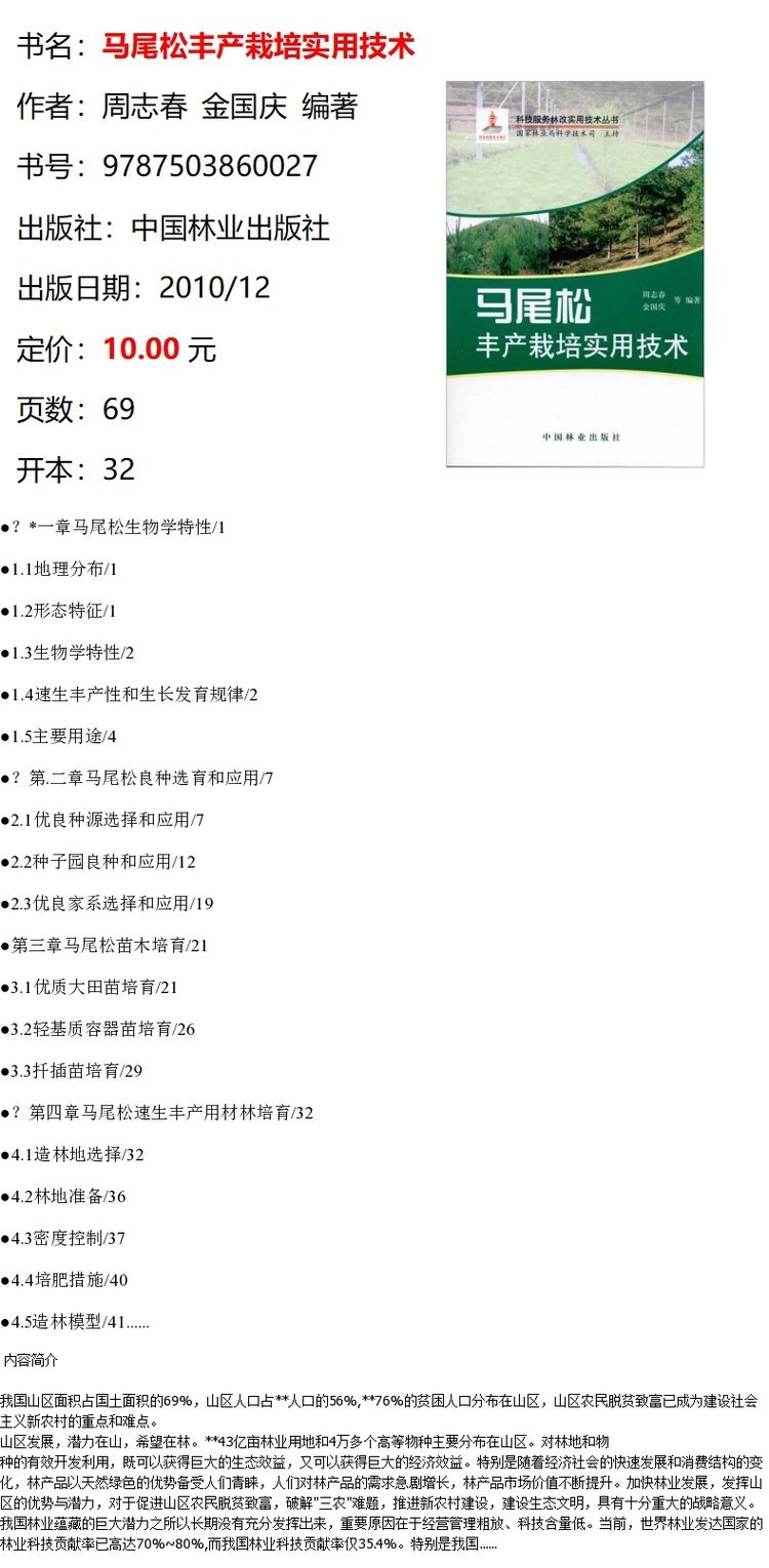 马尾松丰产栽培实用技术 6002 科技服务林改实用技术丛书 中国林业出版社