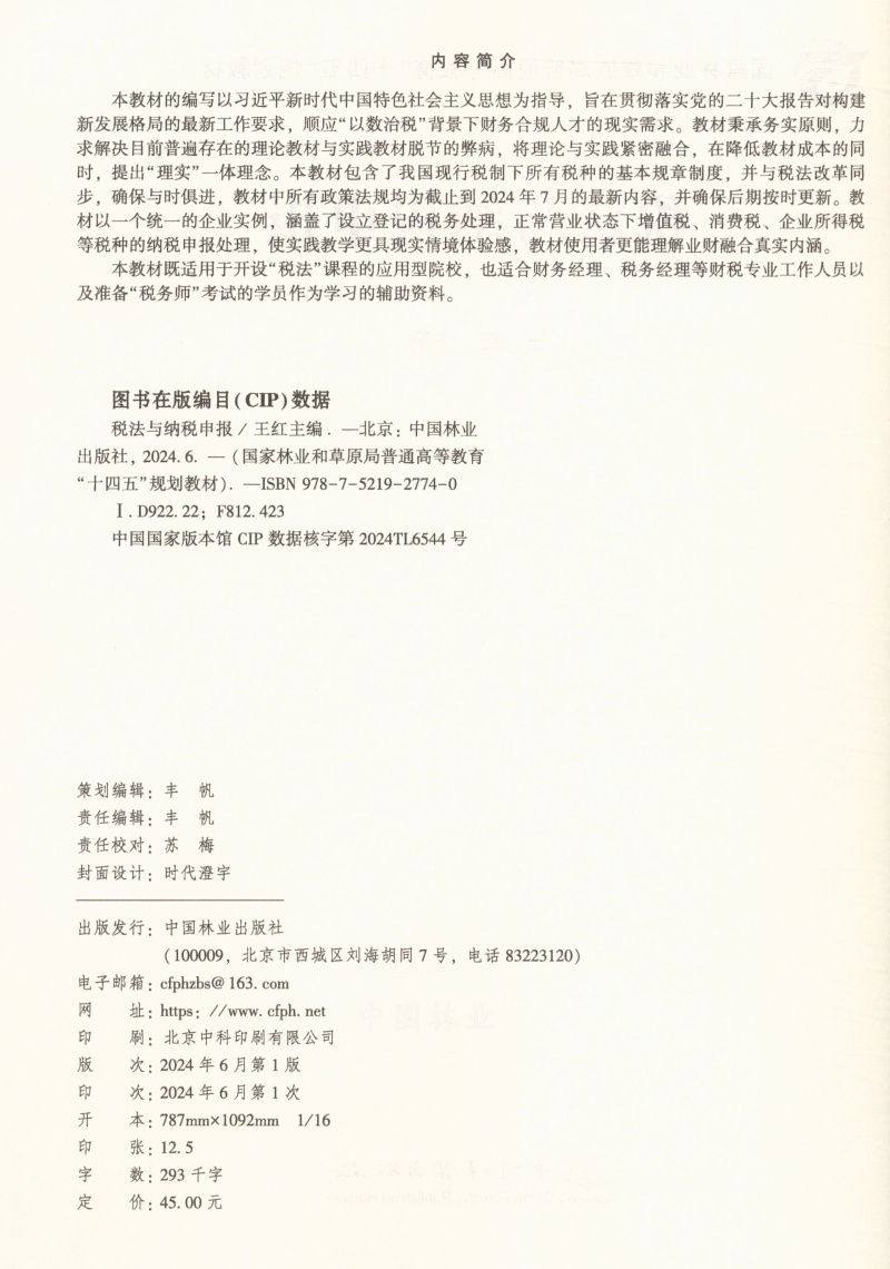 税法与纳税申报(国家林业和草原局普通高等教育十四五规划教材) &2774