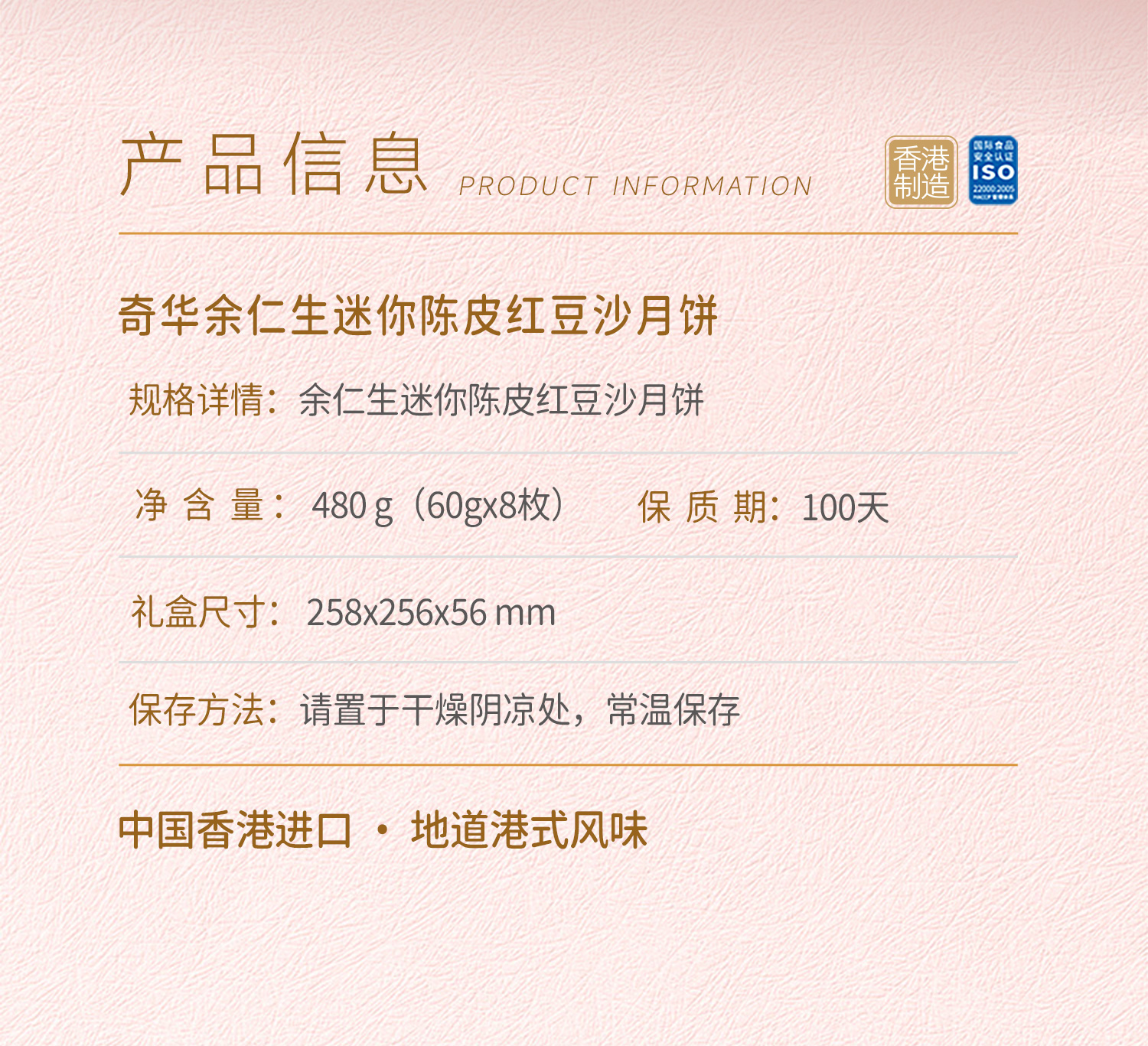 【迷你余仁生陈皮豆沙月饼】传统口味 港式月饼 糕点 中秋送礼奇华饼家中国香港进口