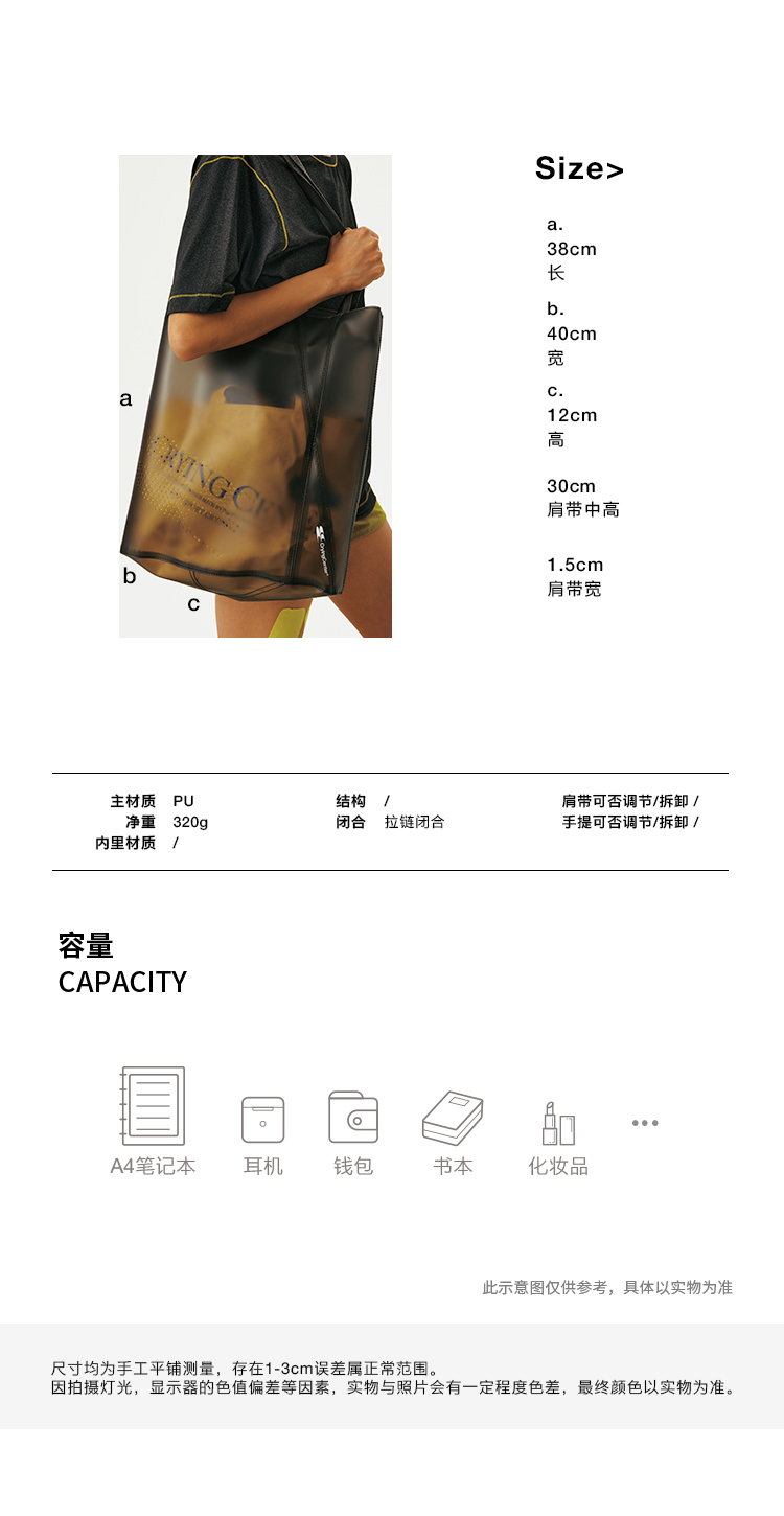 CryingCenter 环保可降解tpu材料半透冲孔拼接星星托特包哭喊中心