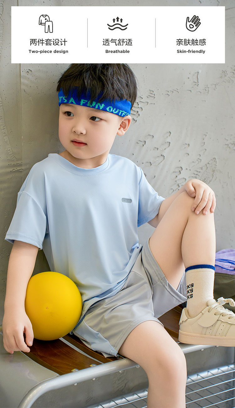 优选丨【2套超值购 需要不同尺码请备注】可优鼠A类速干冰冰T套装 男女童同款 透气网孔设计 轻盈舒爽 时尚百搭