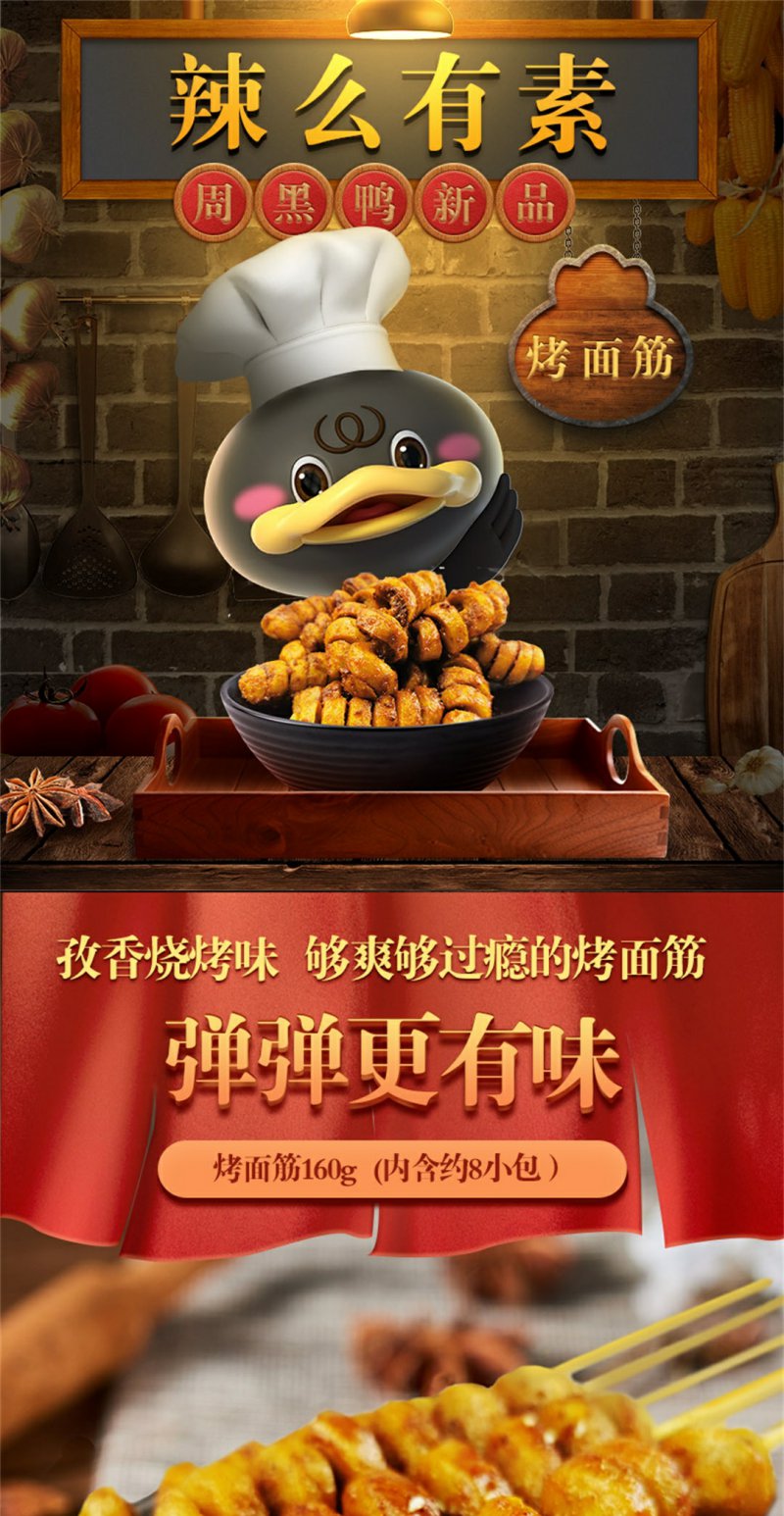 周黑鸭 烤面筋 麻辣休闲小零食川香孜然 160g*3袋