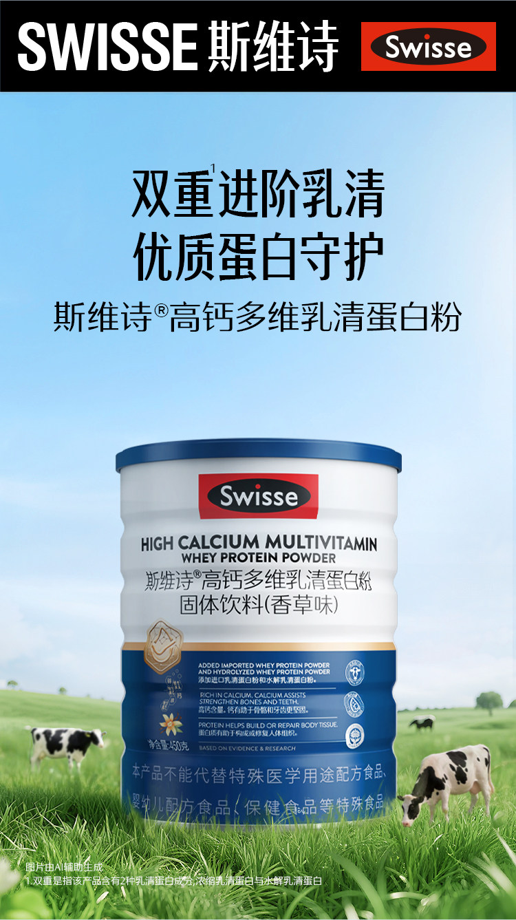 拍2罐459元/单罐259元!450gSwisse斯维诗®高钙多维乳清蛋白粉固体饮料(香草味)RUI