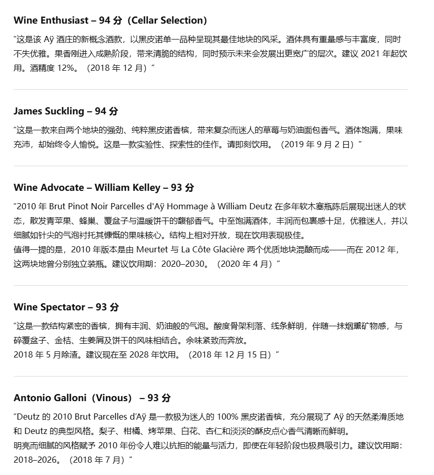 2010 Deutz Hommage a William Deutz Parcelles d'Ay Brut 蒂姿酒庄致敬威廉·蒂姿极干型年份香槟 2010
