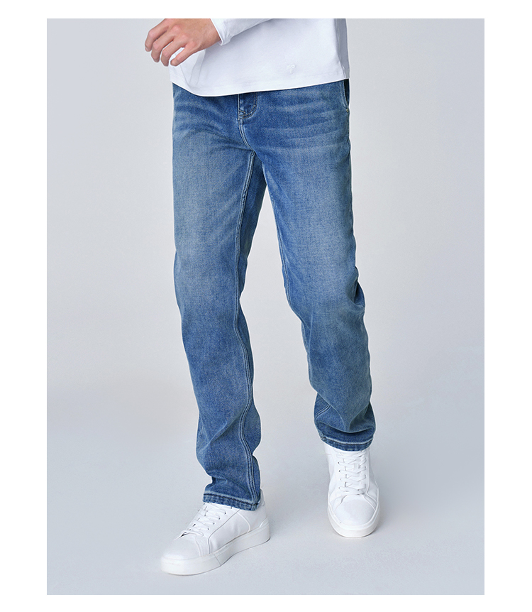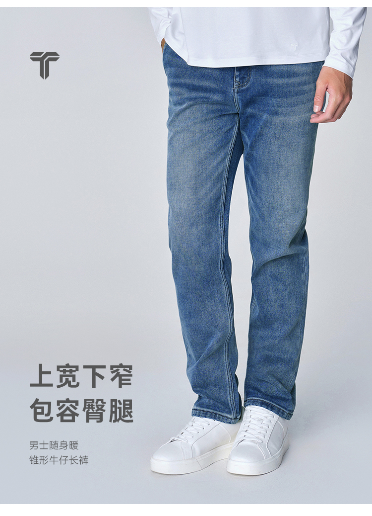 拇指白小牛男士随身暖锥形牛仔长裤无限系列