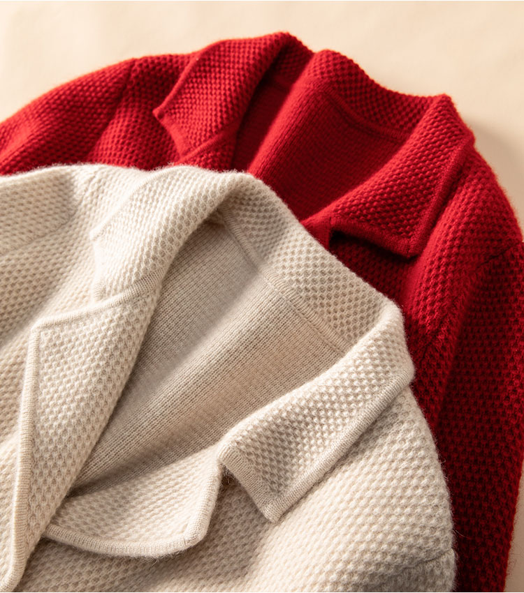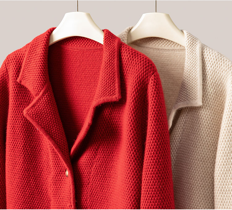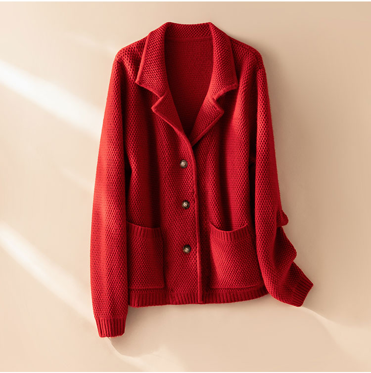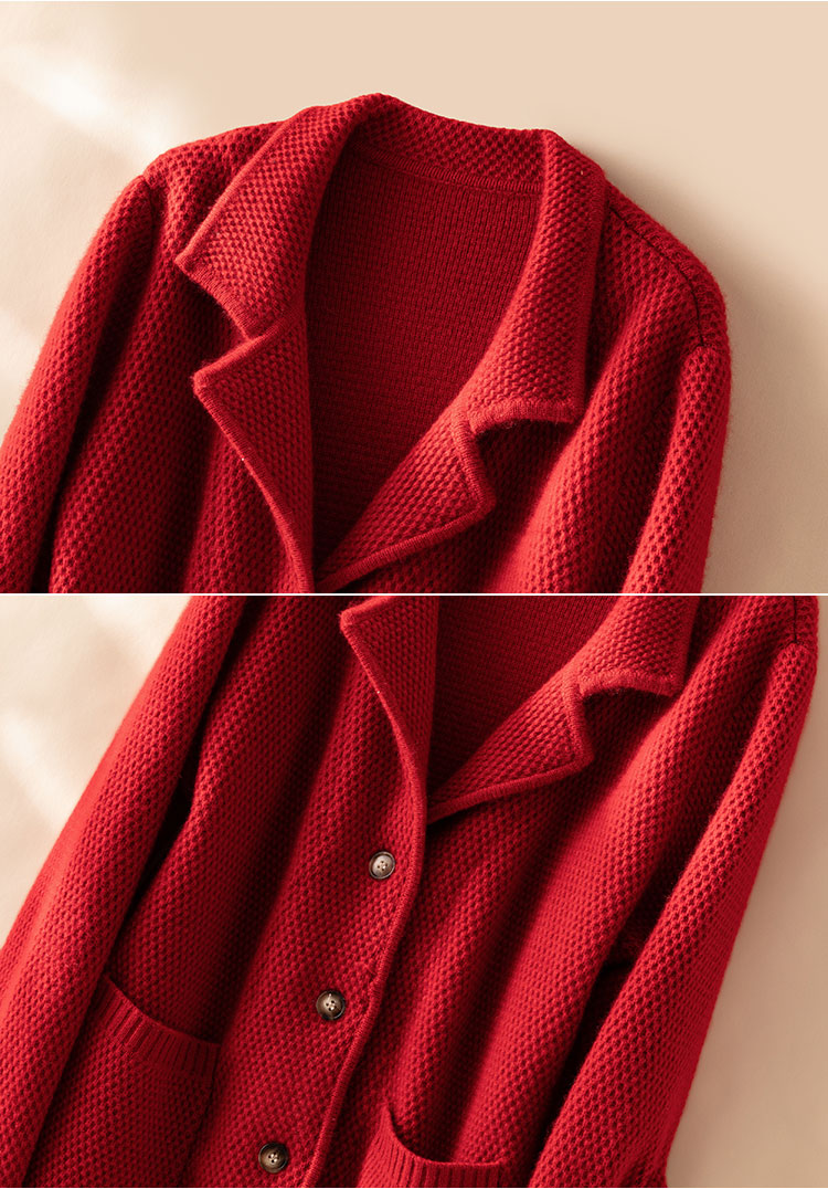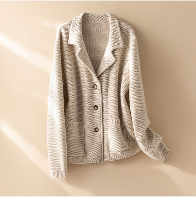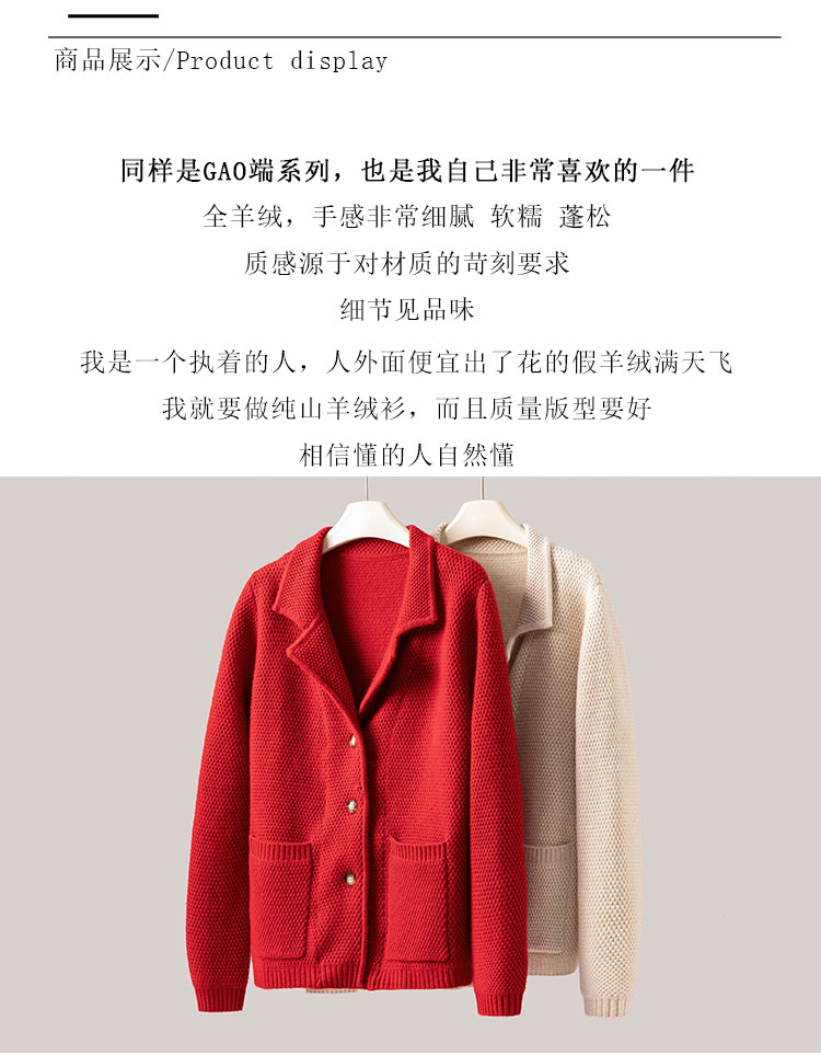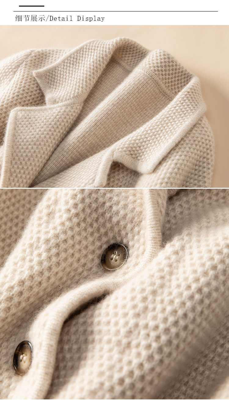 桑榆非晚~重磅加厚100%纯山羊绒西装翻领开衫外套女CYR250355