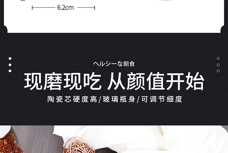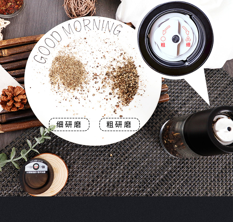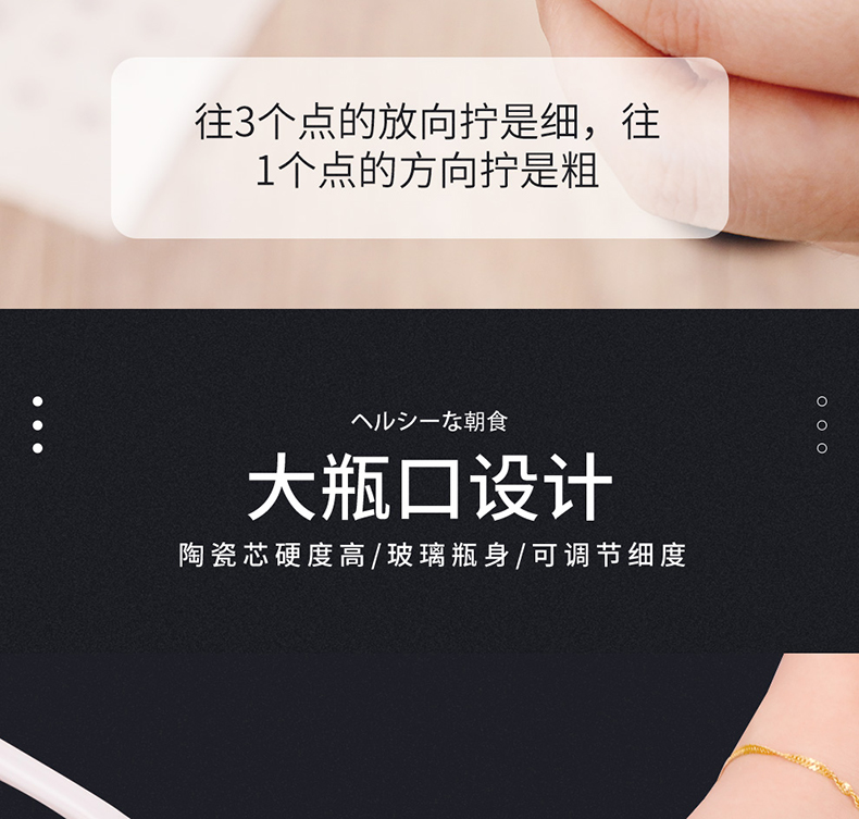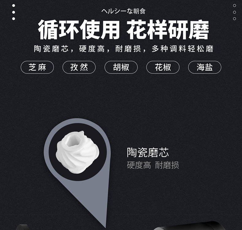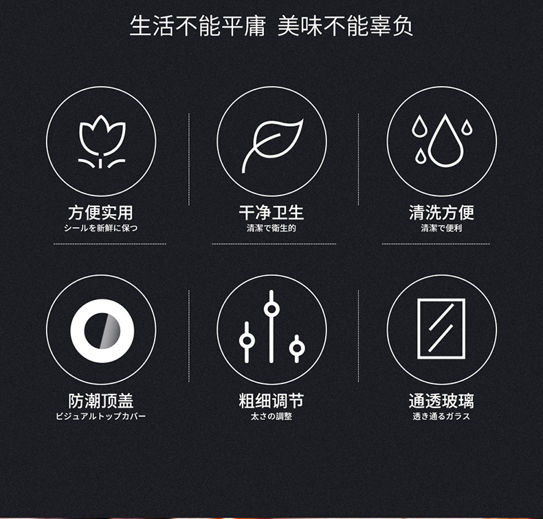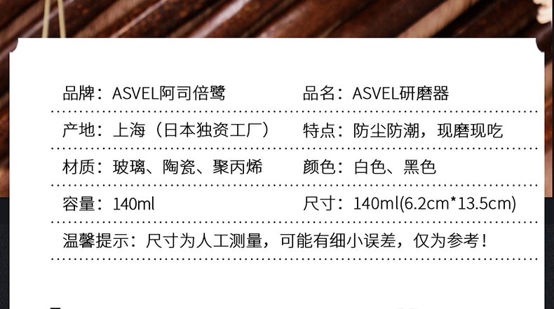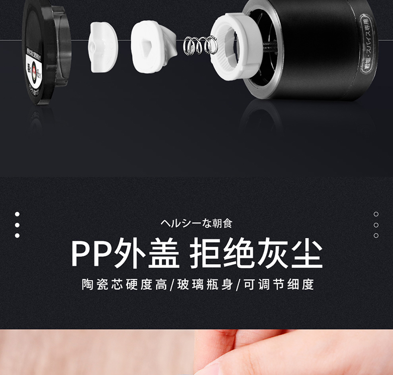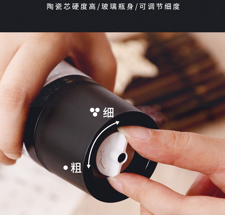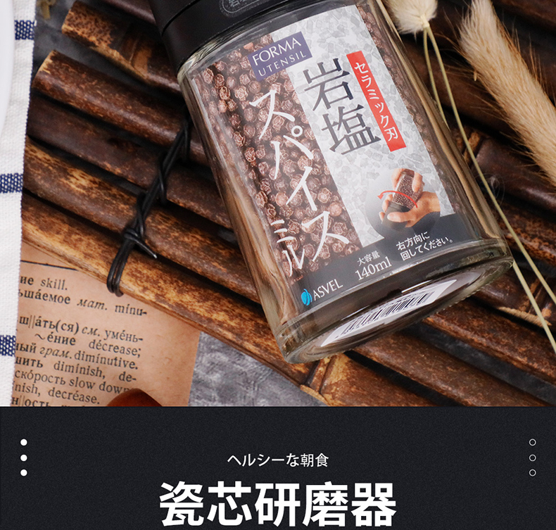 阿司倍鹭(ASVEL) FORMA 陶瓷芯研磨器手动玻璃瓶胡椒磨碎器 黑色