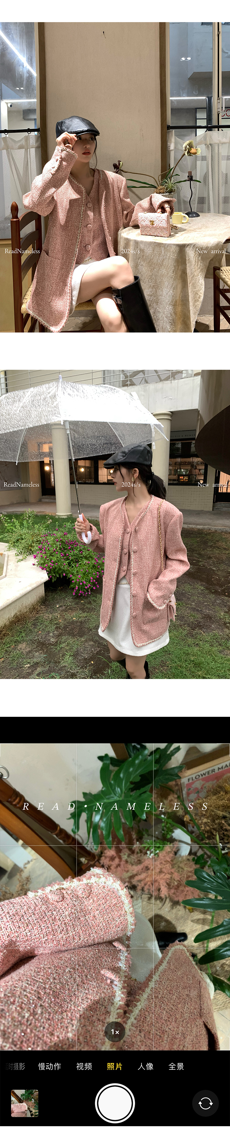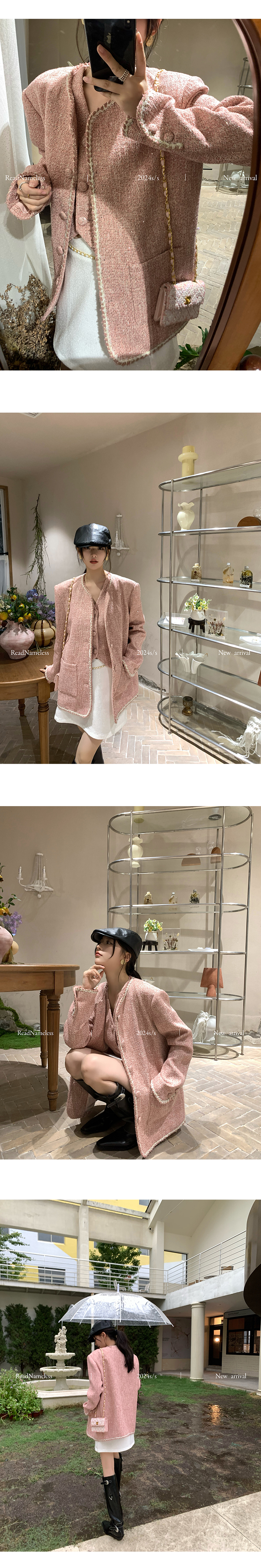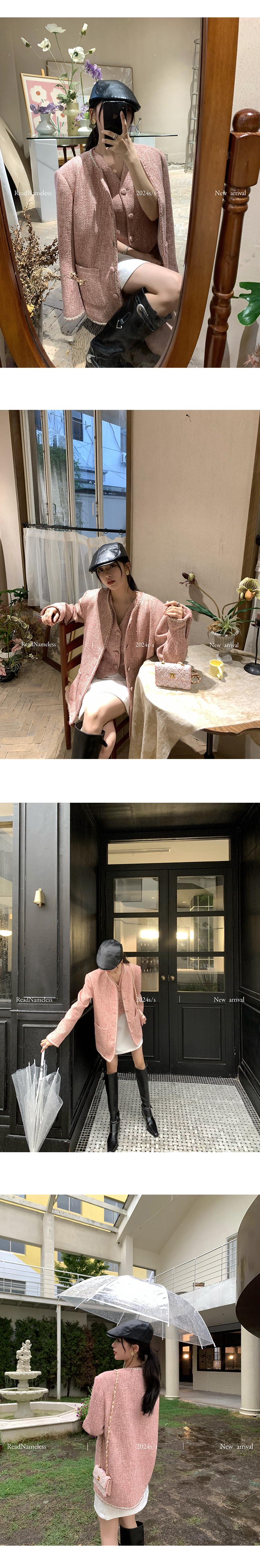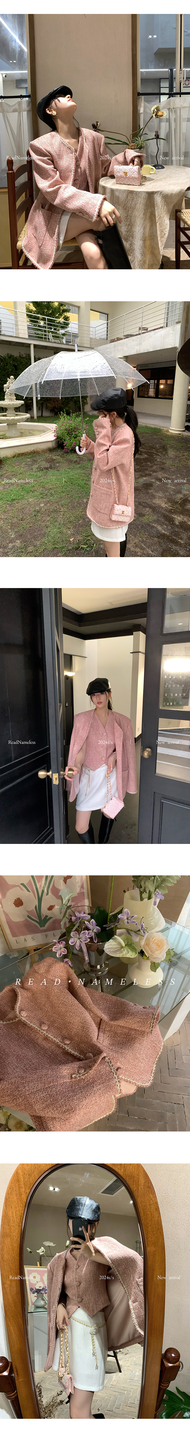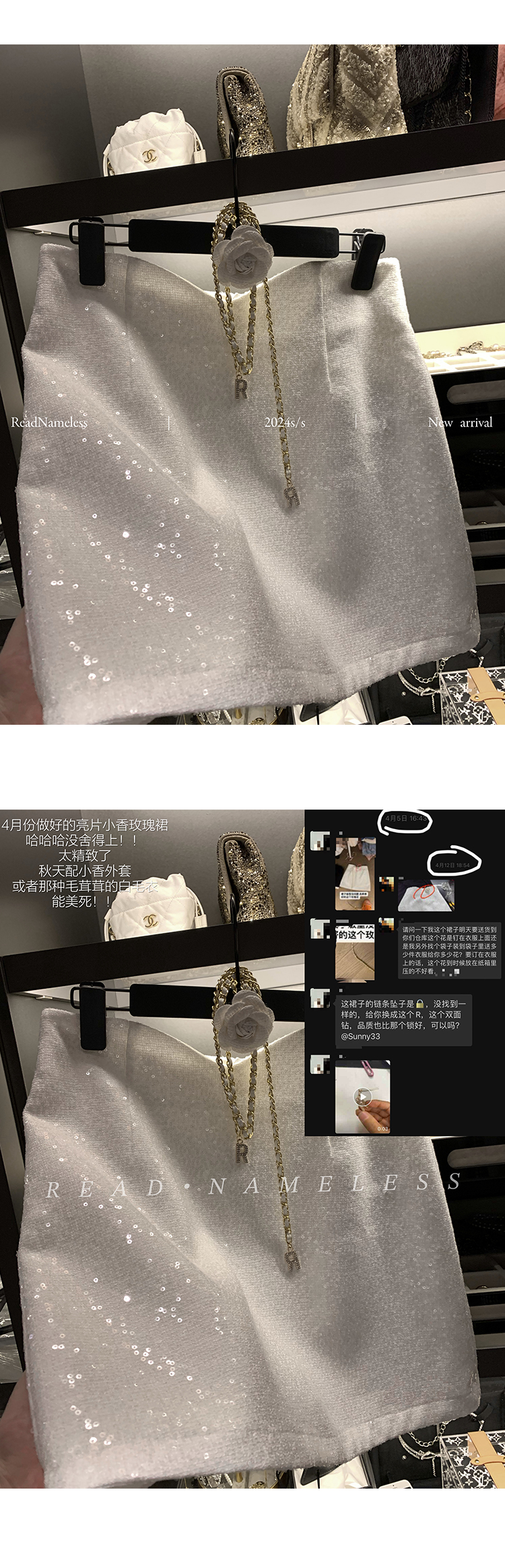 Read Nameless /法国进口粉色bling 小香外套+白色亮片玫瑰腰链裙