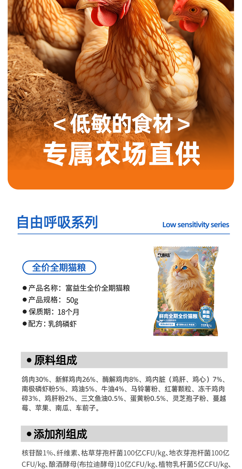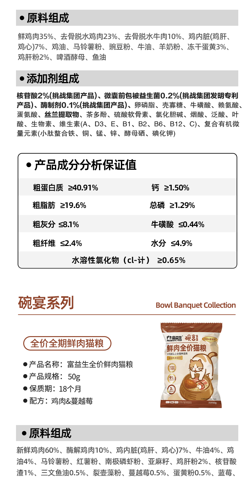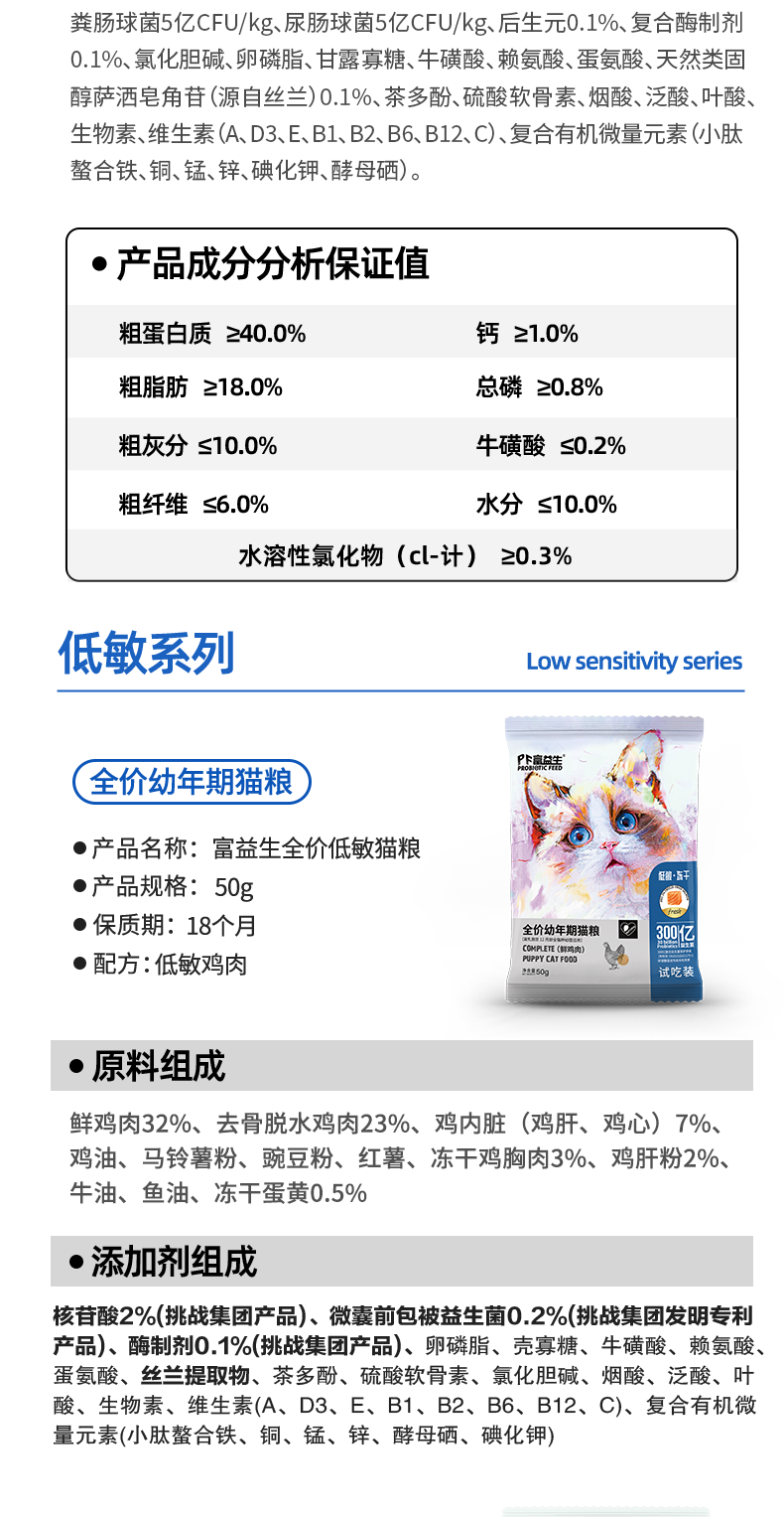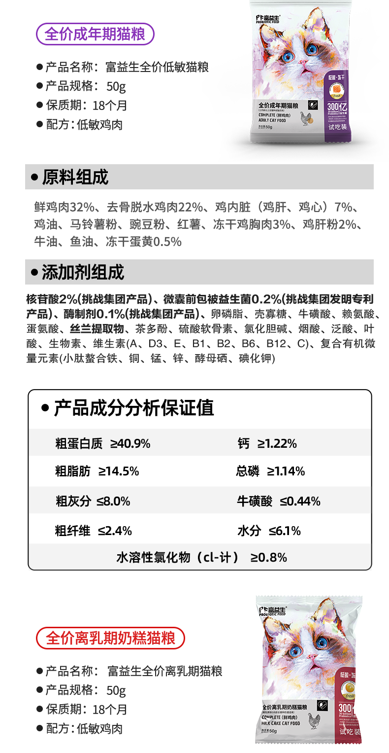 【9.9到手7件】富益生 猫咪尝鲜礼包 猫咪零食鲜肉汤罐头85g*2+猫粮试吃50g*5