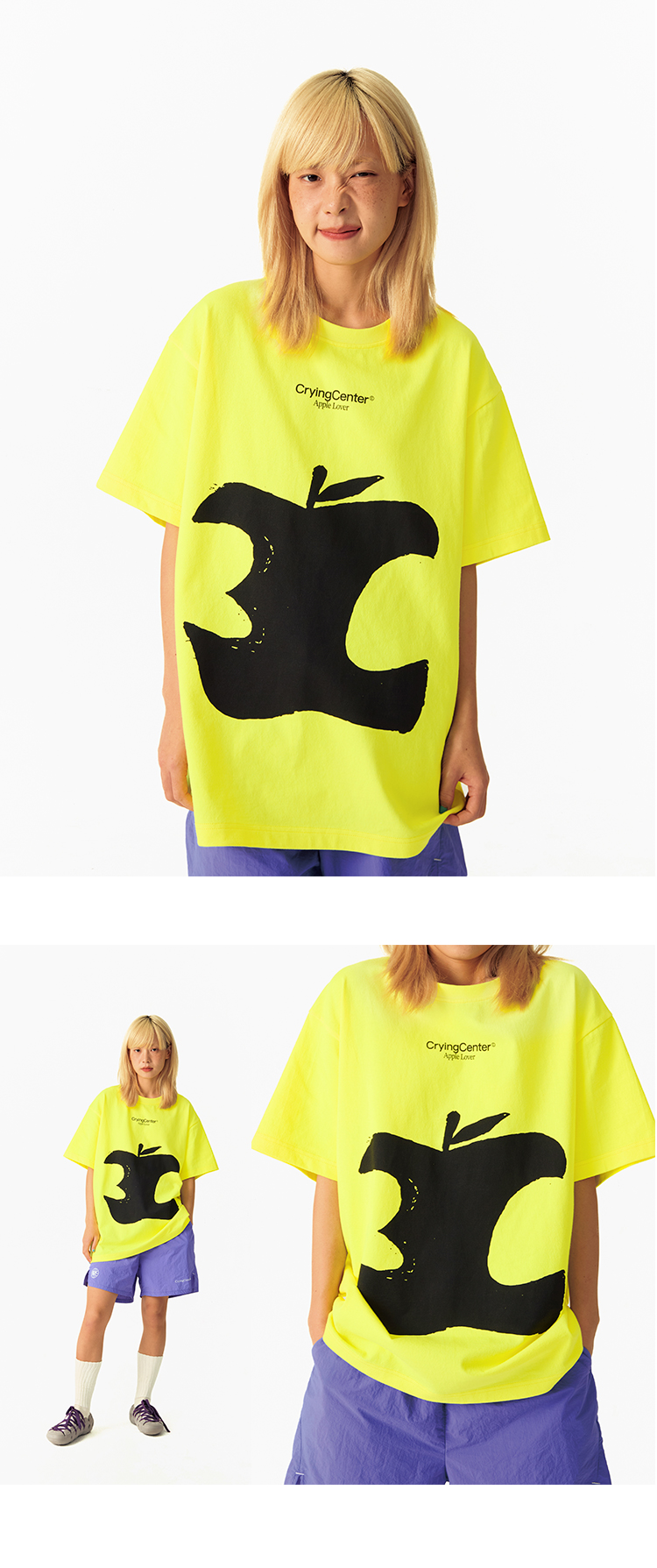 CryingCenter 3C苹果手绘荧光色短袖tee 哭喊中心