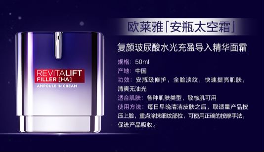 欧莱雅复颜玻尿酸水光充盈导入精华面霜 50ml(安瓶太空霜)(有效期至2025年12月)