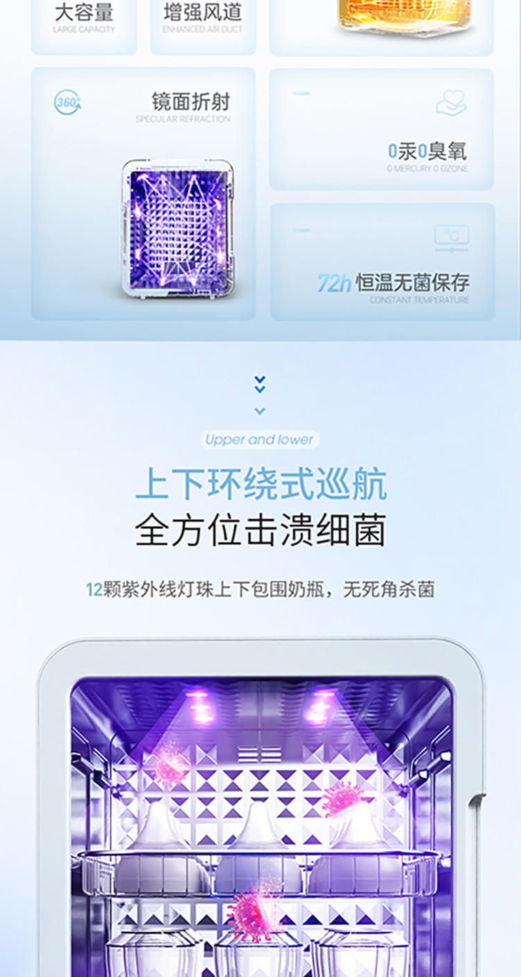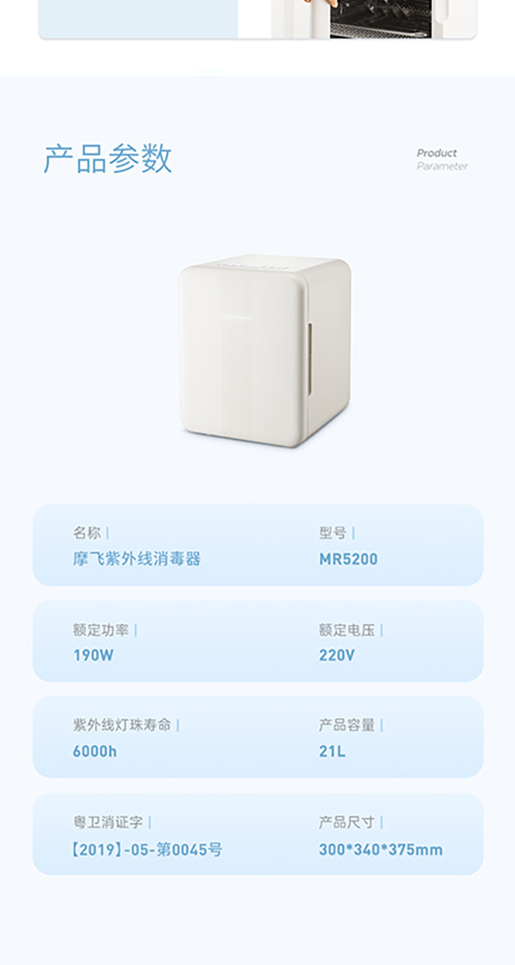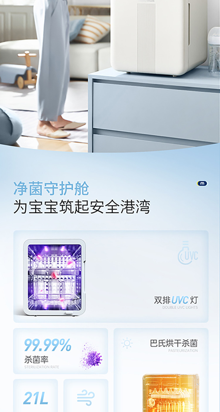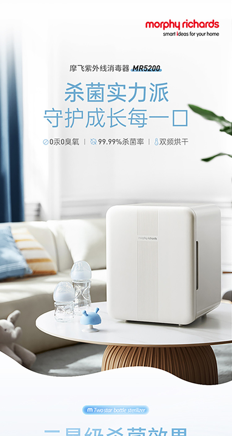 Morphyrichards摩飞 婴儿消毒柜奶瓶消毒器杀菌烘干一体紫外线无汞灯珠消毒机MR5200 21L