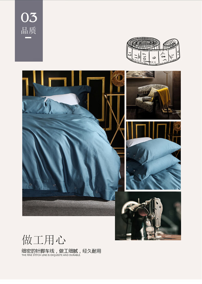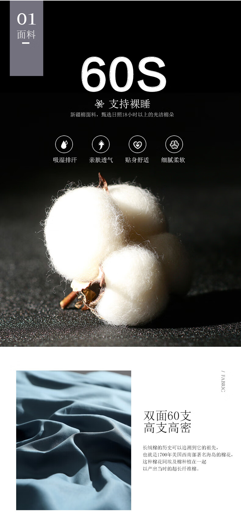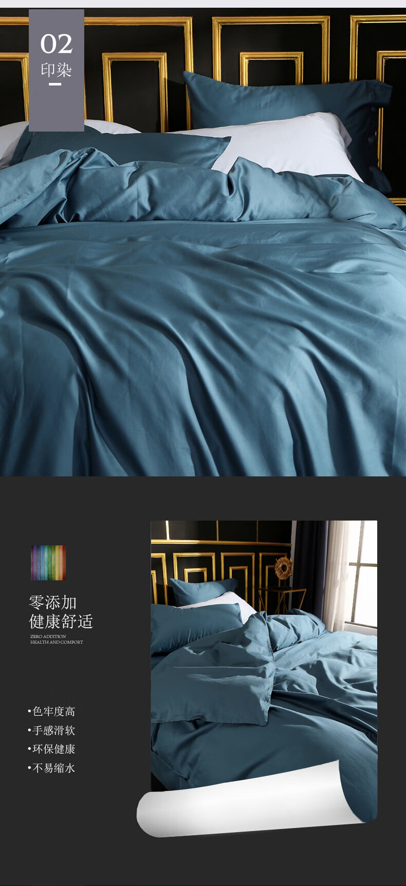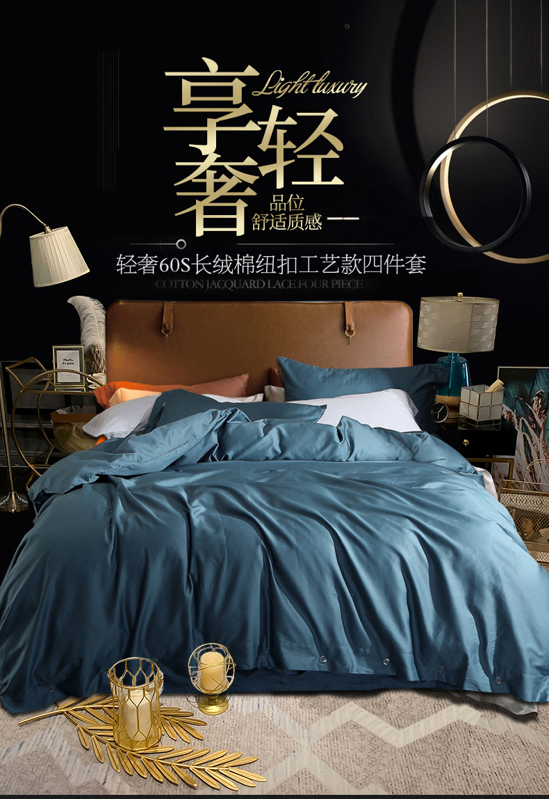 圣夫妮 轻奢60s长绒棉四件套200*230cm-海水兰SFN-012