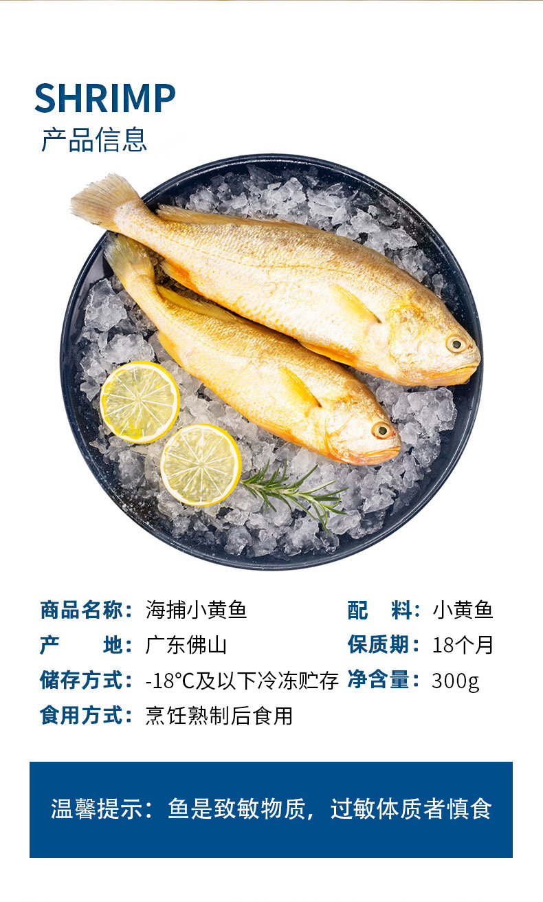 【润荇渔市200-100】优选国产海捕小黄鱼 300g/袋 鲜捕加工口感细腻