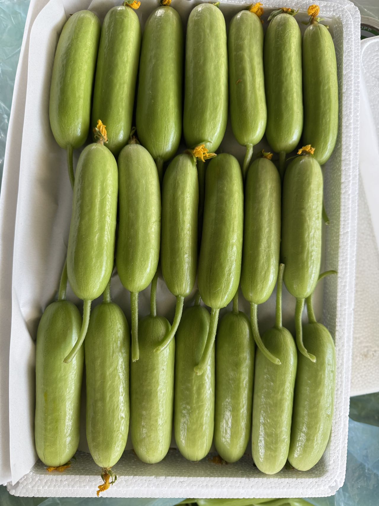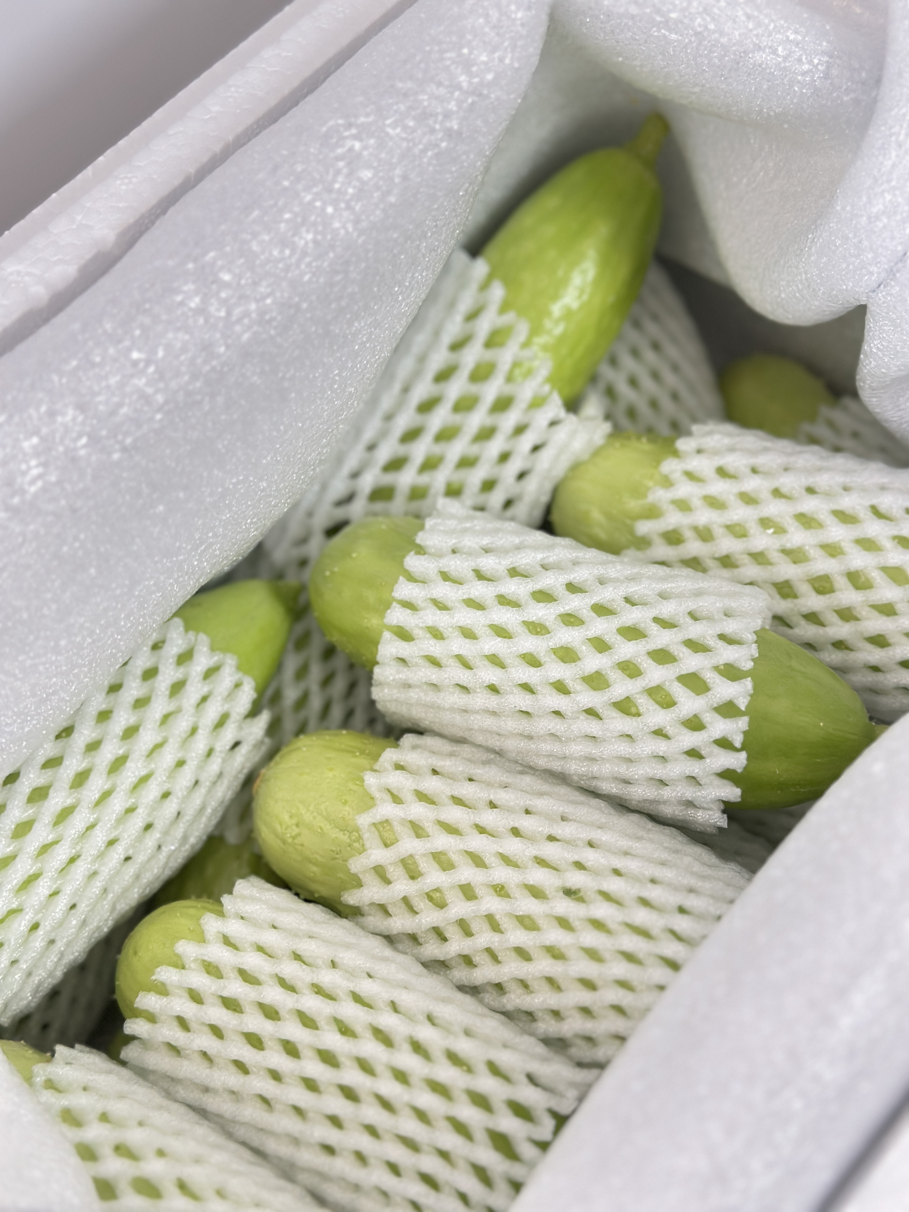 【产品名称】精品贝雅奶油黄瓜【规格】净重2斤: 8-10个左右。净重5斤:20-25 个左右【生产日期】现摘现发