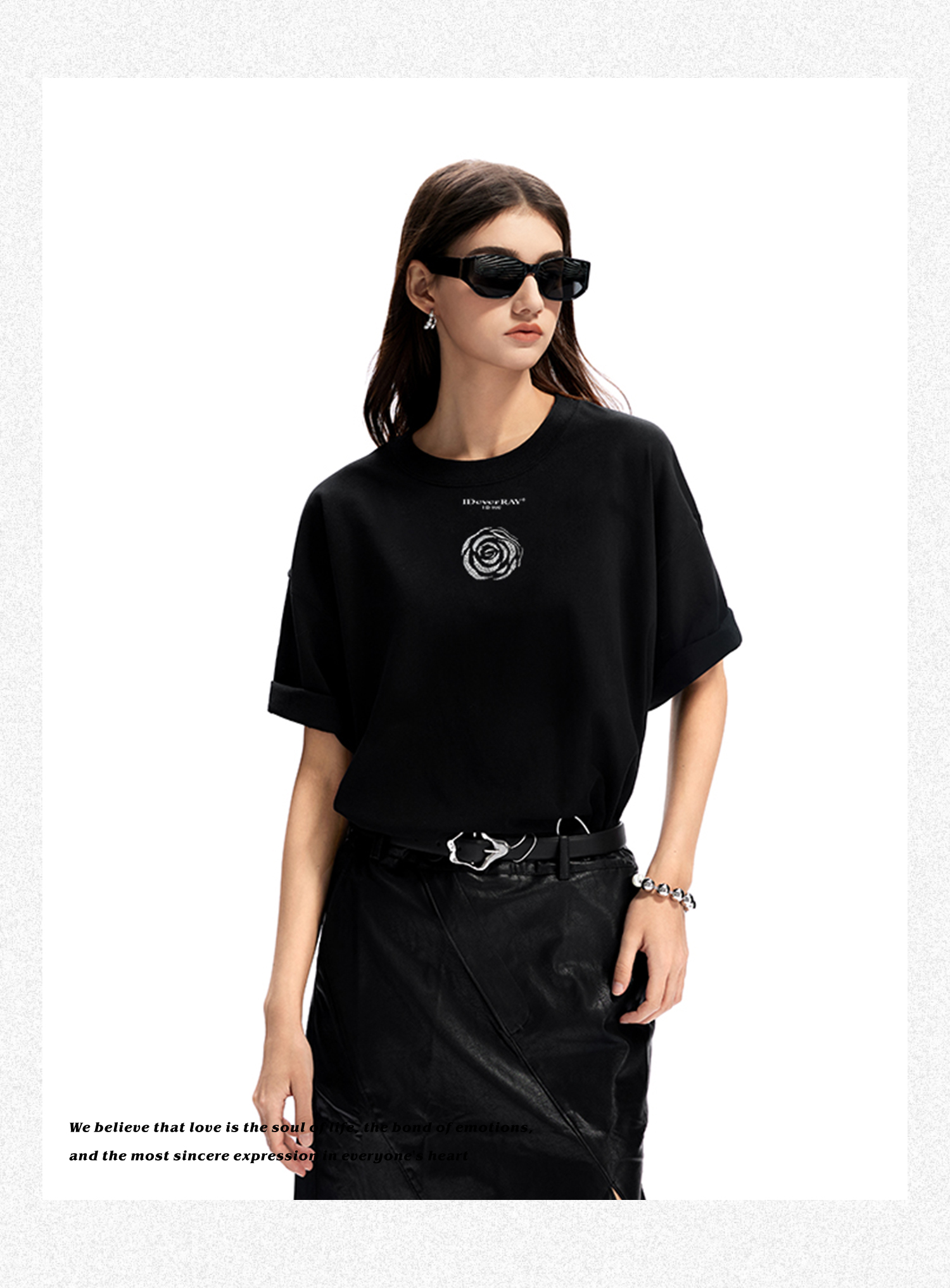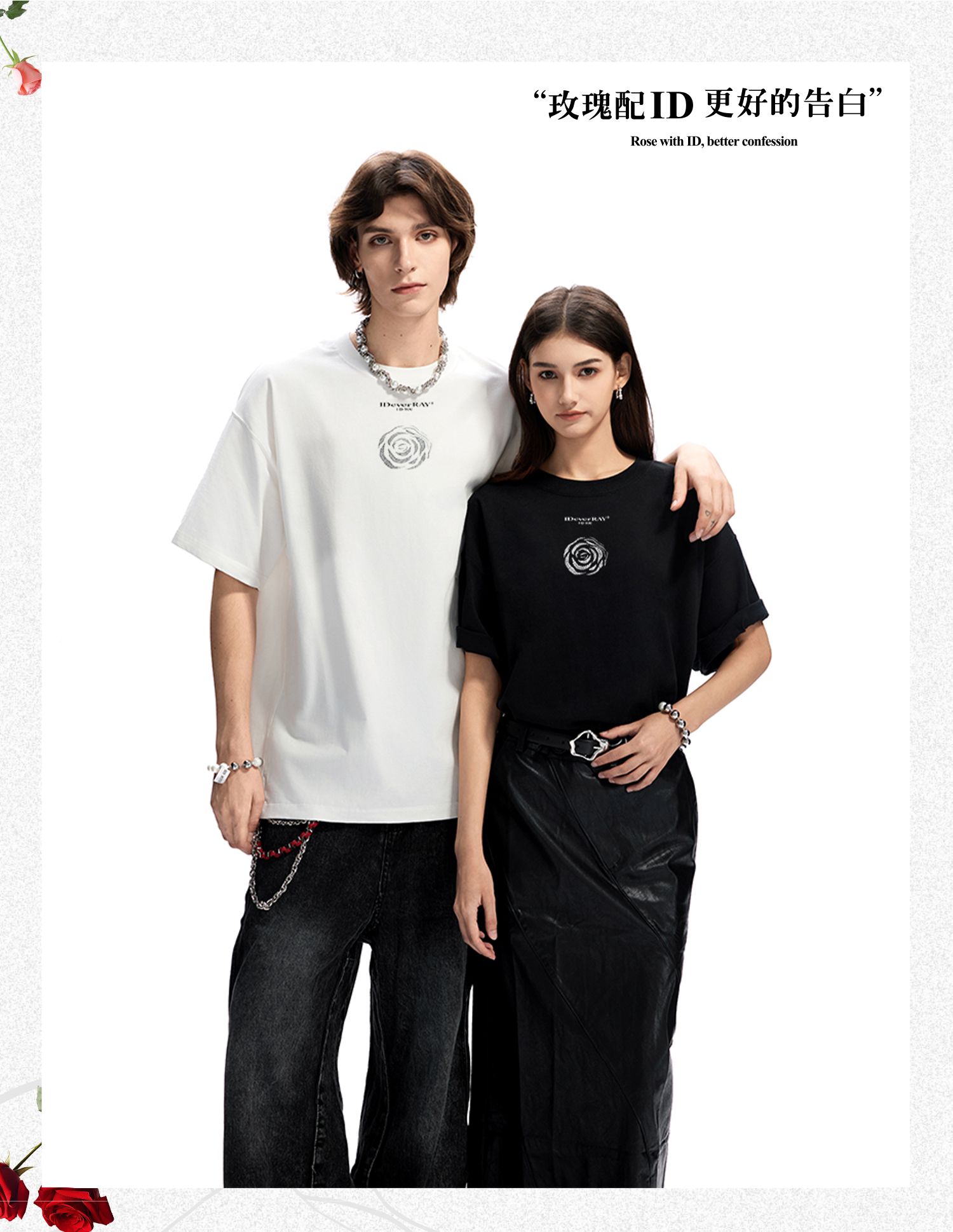 IDEVERRAY夏季2025新款花卉字母印花休闲情侣装圆领短袖男女士潮流t恤21MSL-ID25SSFAT013