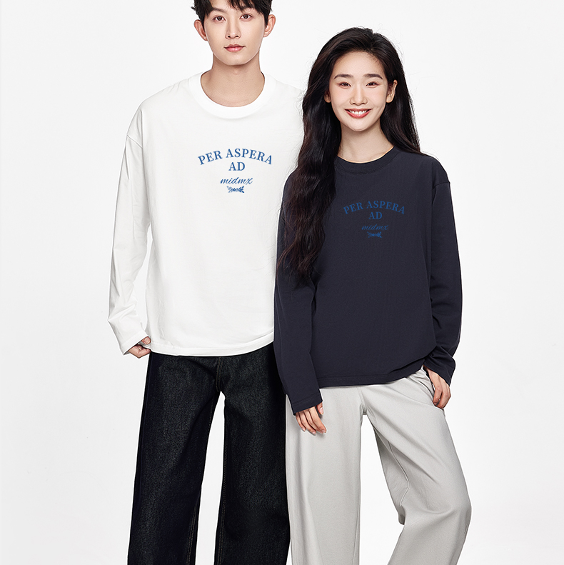 「棉的美学」203g纯棉字体印花T恤秋季薄款内搭日常简约长袖上衣