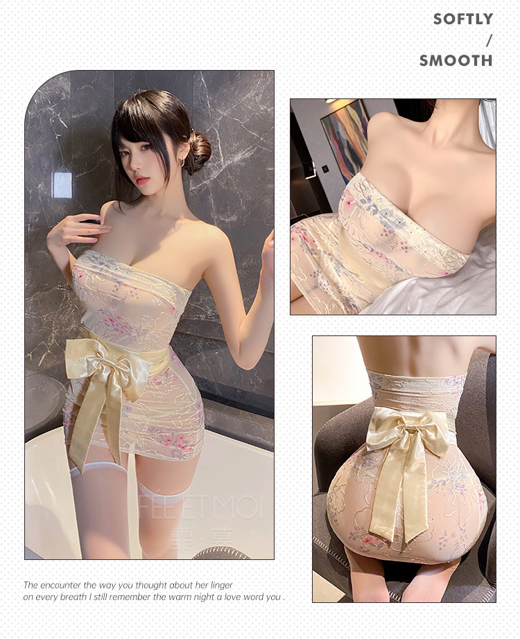 【霏慕】抹胸刺绣印花透视和服套装6274情趣内衣性感包臀制服