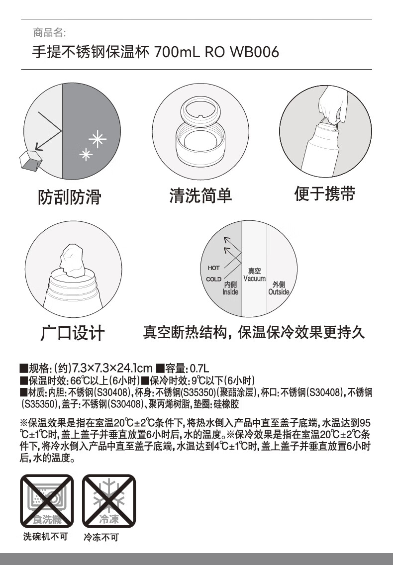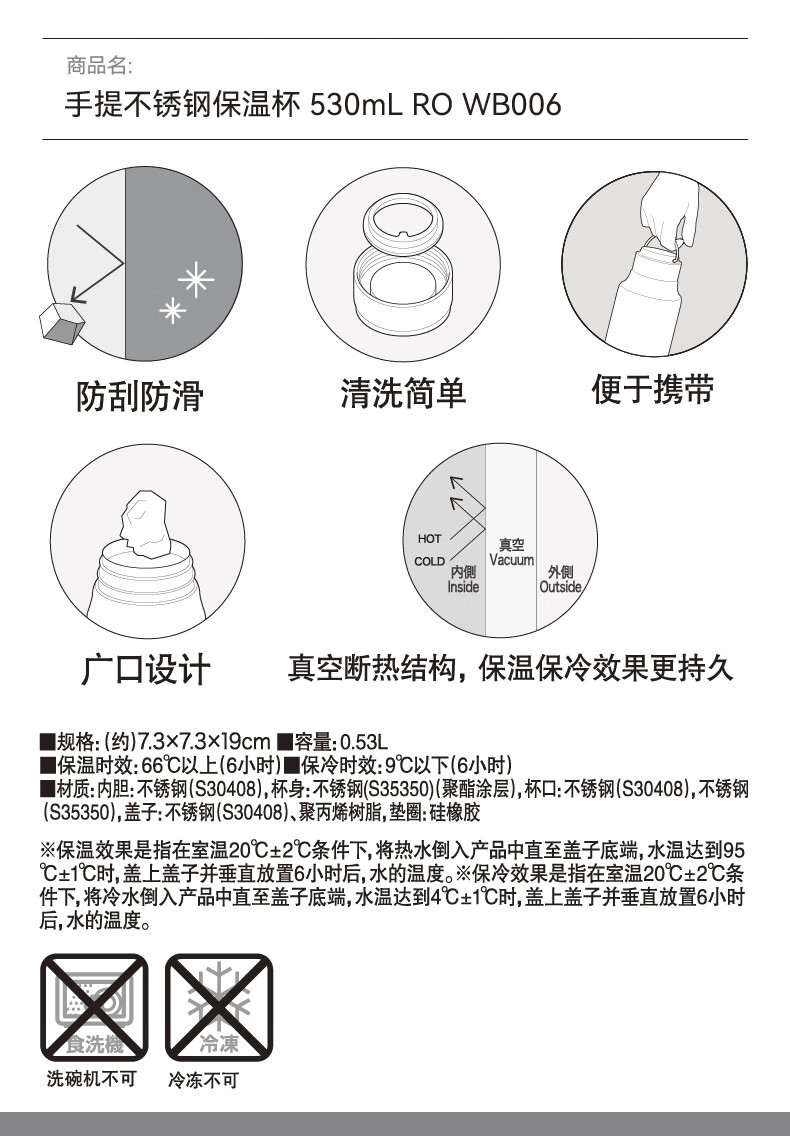 NITORI宜得利家居 手提不锈钢保温杯 530mL RO WB006