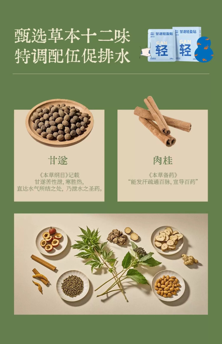 🔵 甘遂轻盈贴|特调12味草本促排水 古方智慧:源自《伤寒论》又加以改良,既保留强力逐水功效,又加速掉秤,促代谢。 贴敷带脉两侧疏通中焦!!! 适合人群:久坐不动、小腹鼓鼓、中焦不通,嗯嗯困难人群!