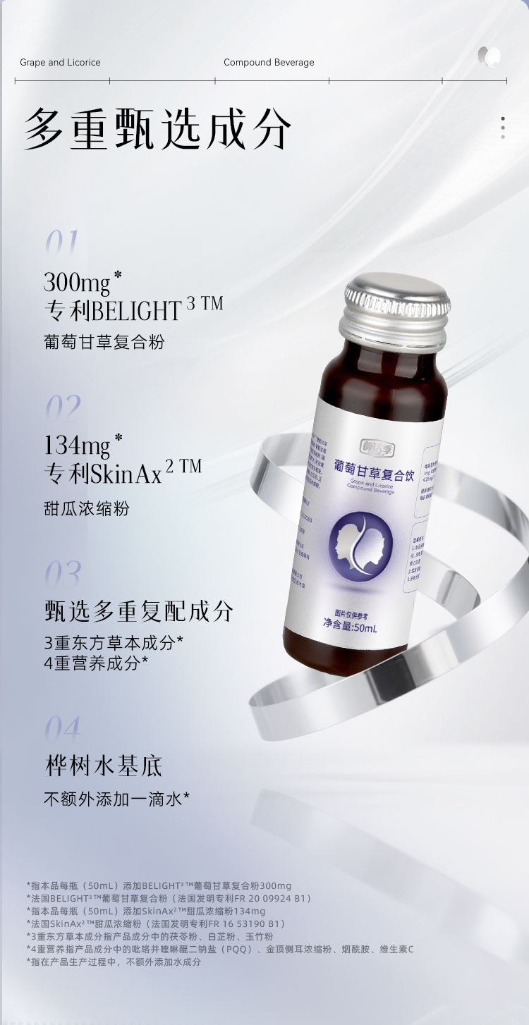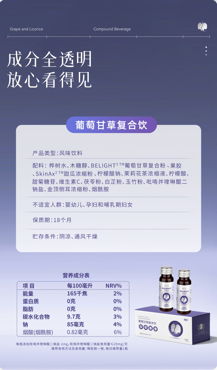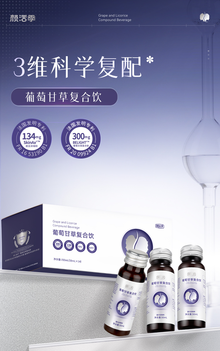 【甄选成分】颜活季 葡萄甘草复合饮 50ml*14瓶/盒 3重东方草本4重营养成分