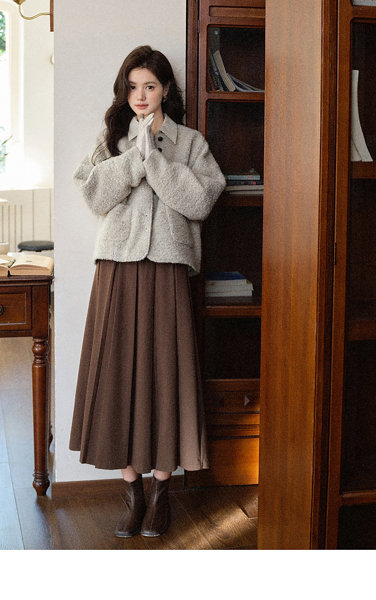 鹿向南「奔赴冬日」米色毛呢短外套女2025秋冬通勤小个子宽松夹克