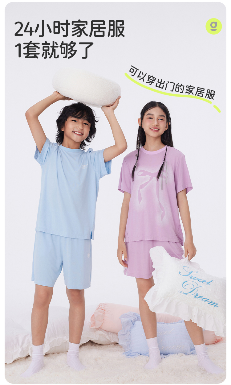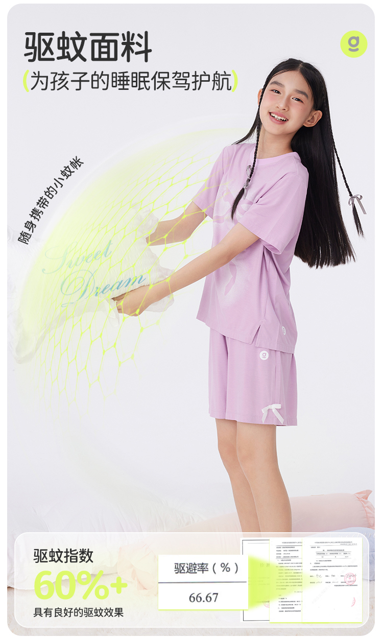 onmygame【慕斯】驱蚊家居服男女童春夏款睡衣儿童2025年新款A类短款