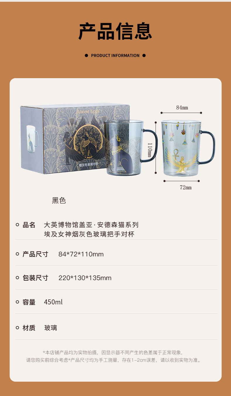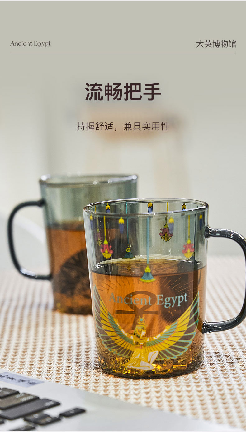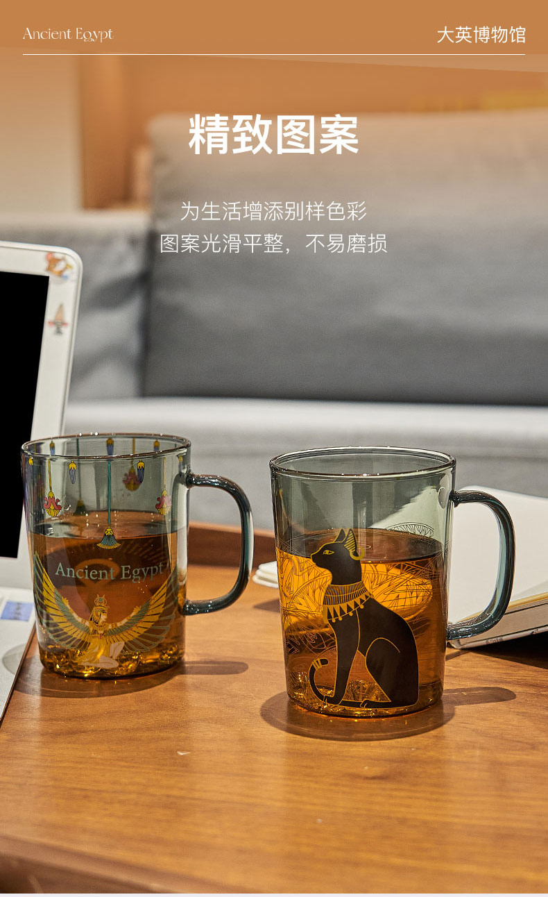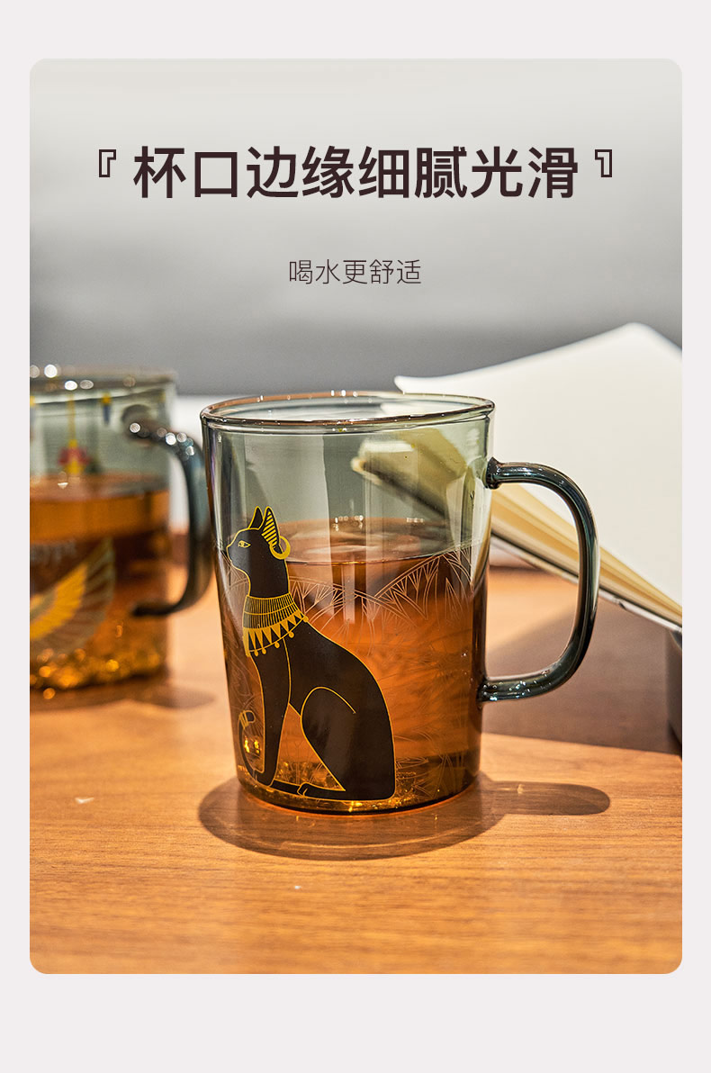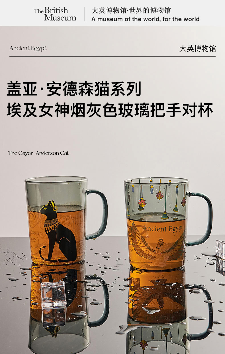 大英博物馆 埃及系列 盖亚·安德森猫 伊西丝 烟灰色玻璃把手对杯情侣礼盒450ml