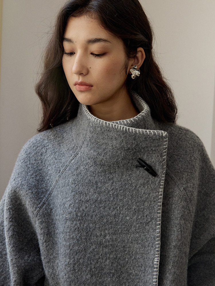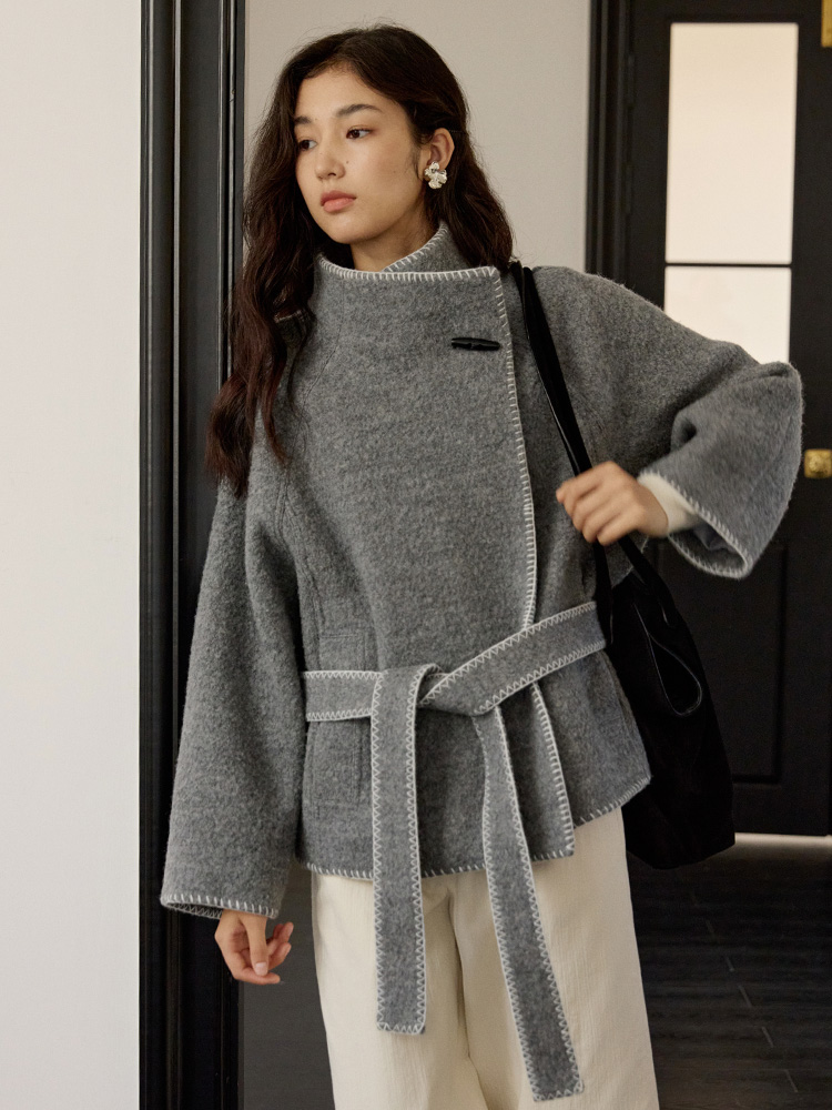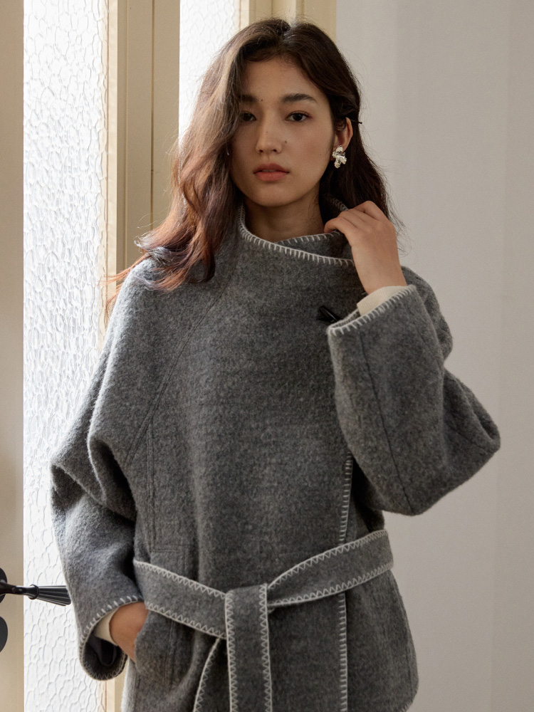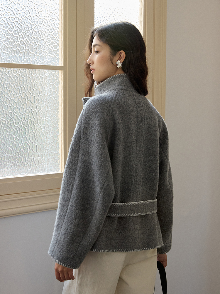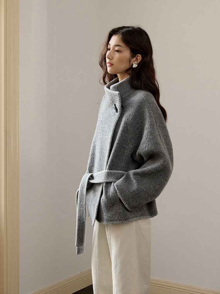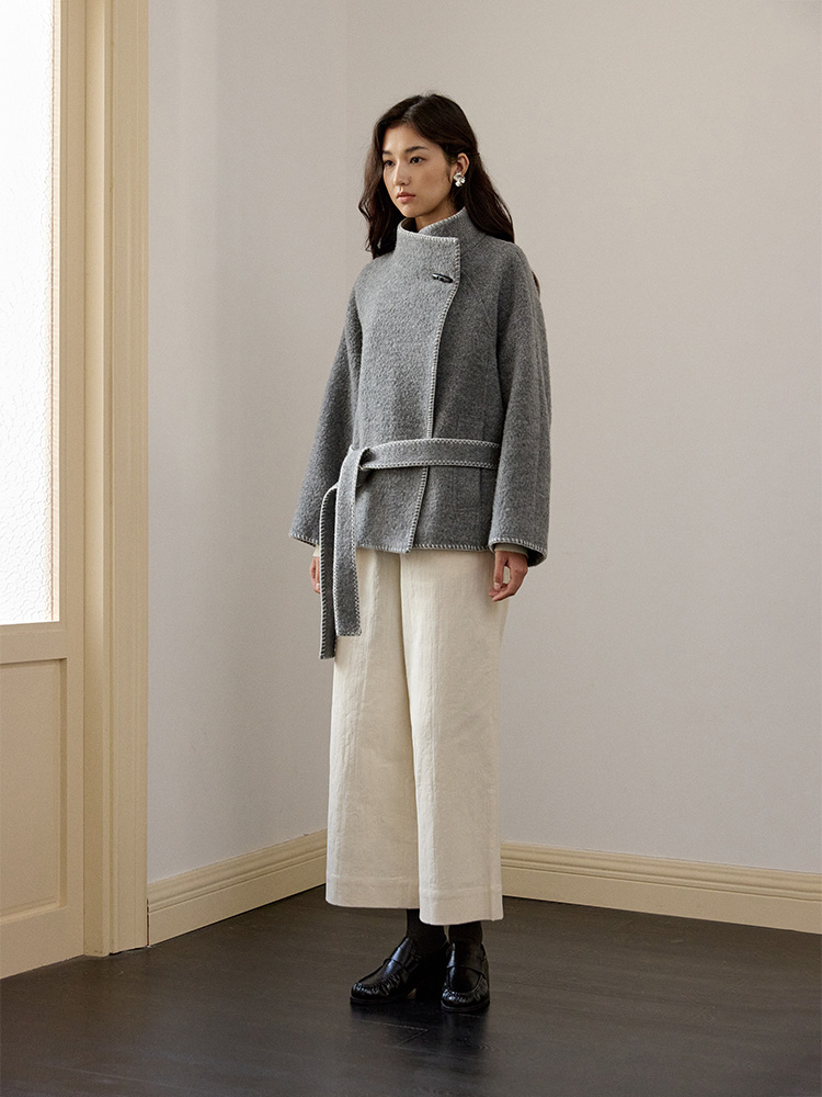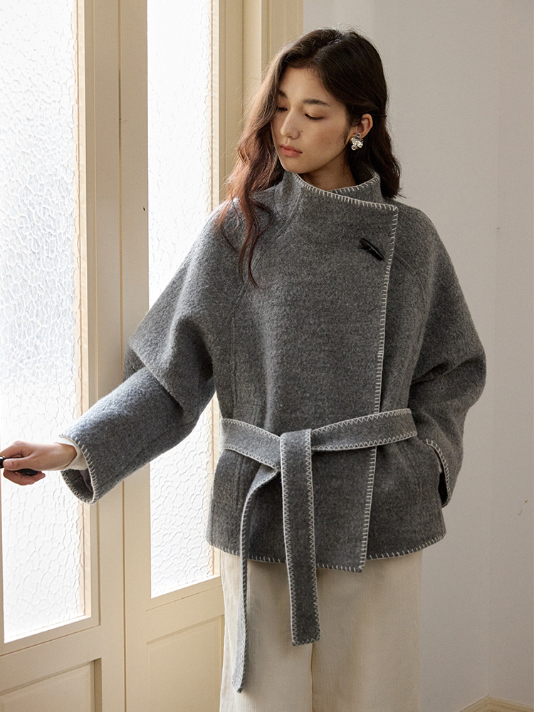 ForPoem 现货 24/FW原创设计贝壳绣锁边绣100羊毛短款腰带休闲大衣