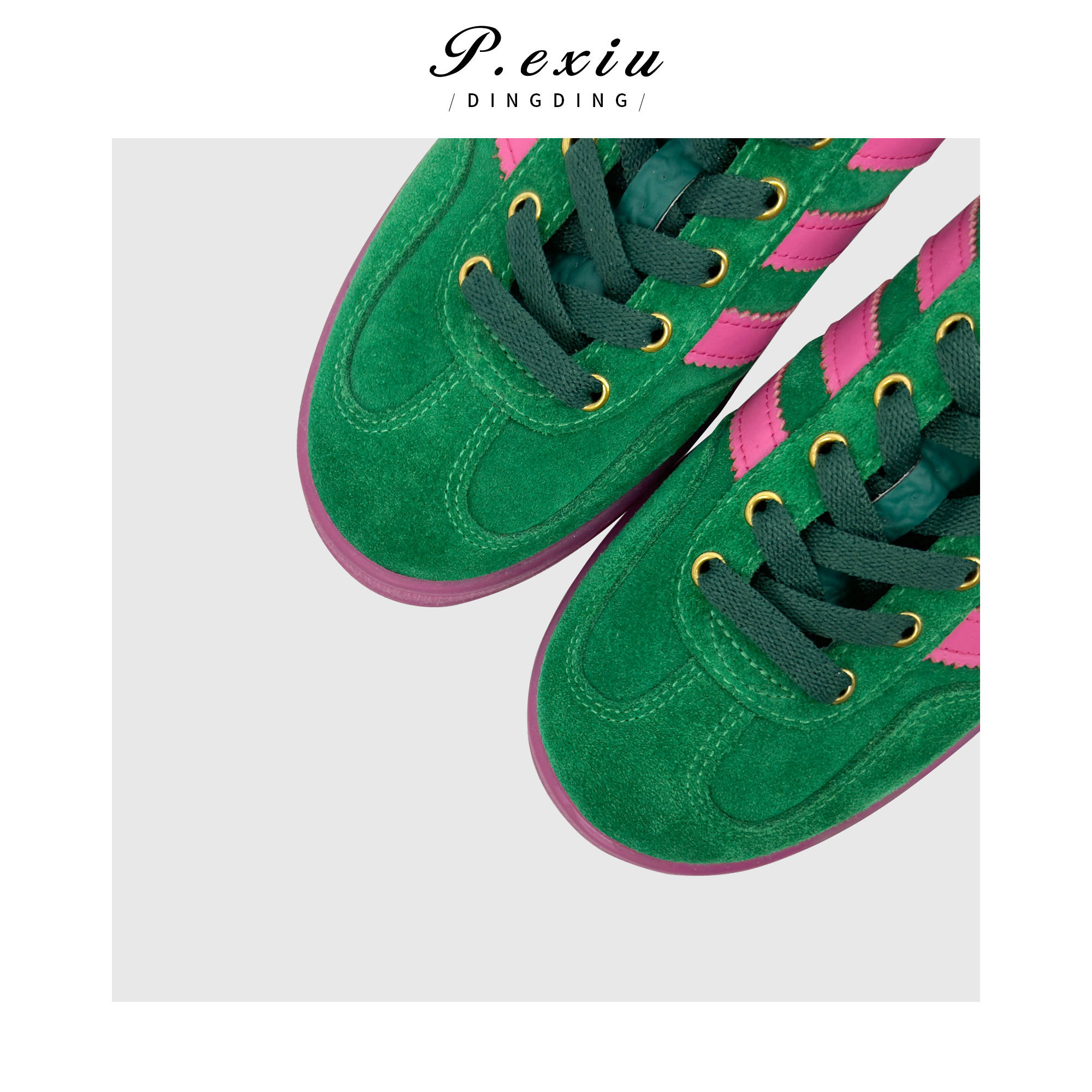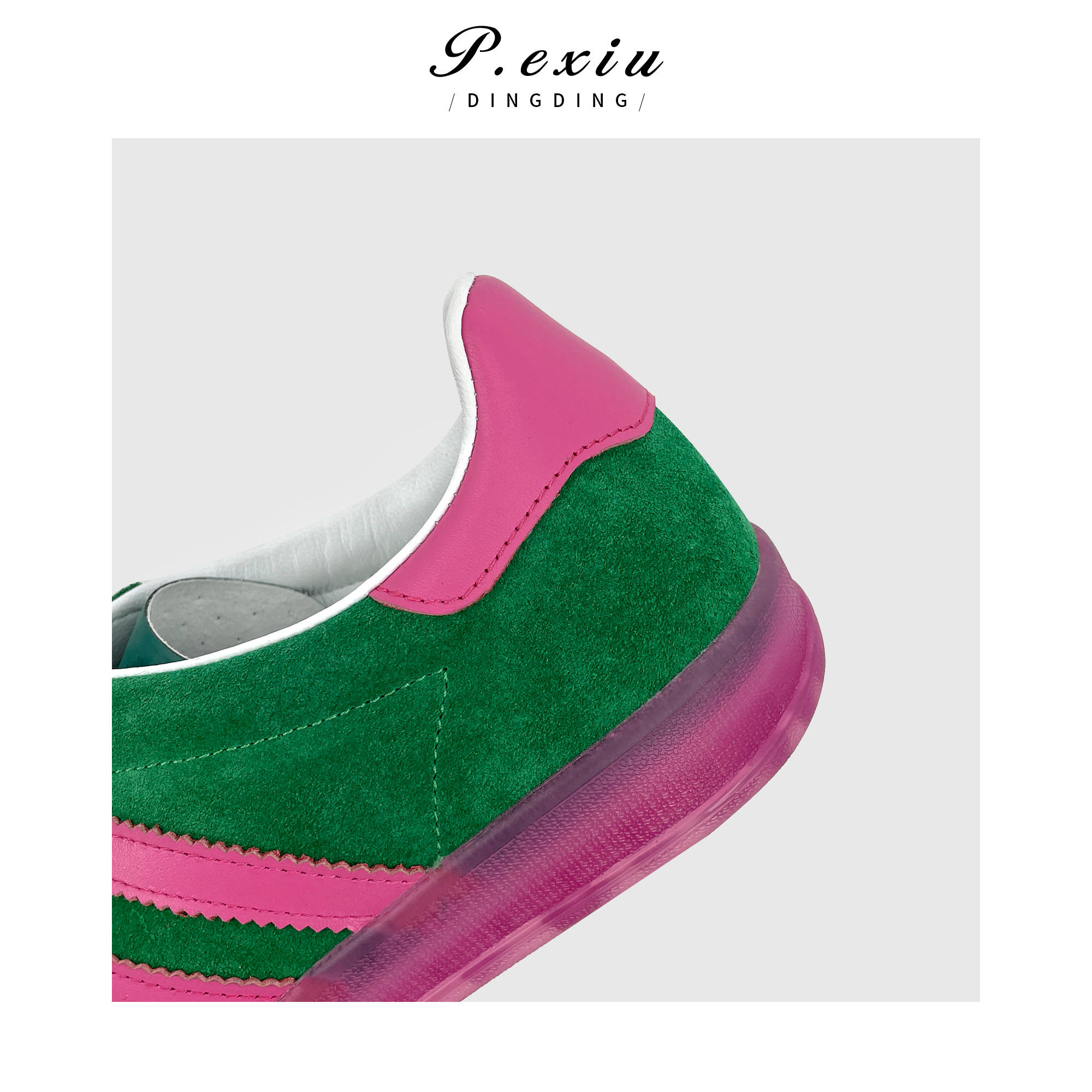 04-5潘依绣丁丁宠粉PanYiXiu/潘依绣头层牛反绒复古拼色休闲百搭德训鞋 QL90701