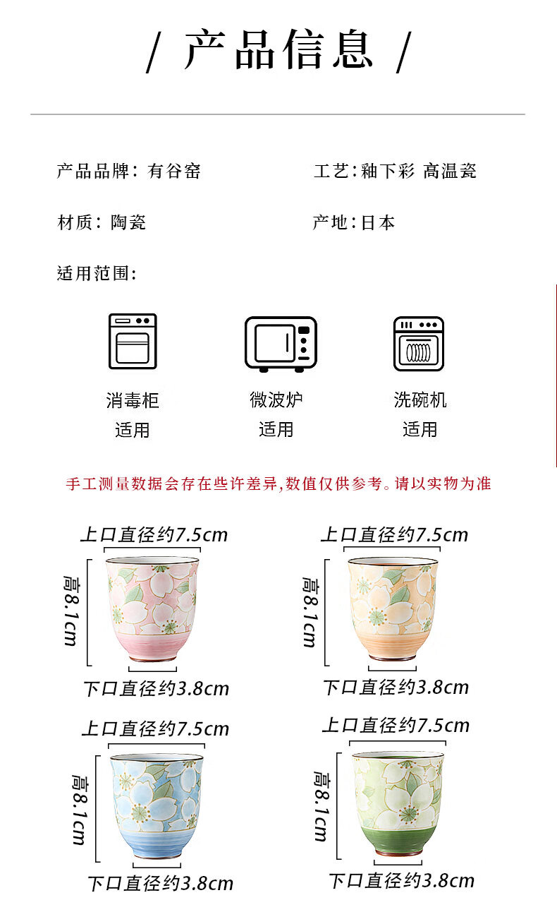 有谷窑宜得利家居 釉下彩日本制茶具乔迁之喜日式茶杯水杯陶瓷