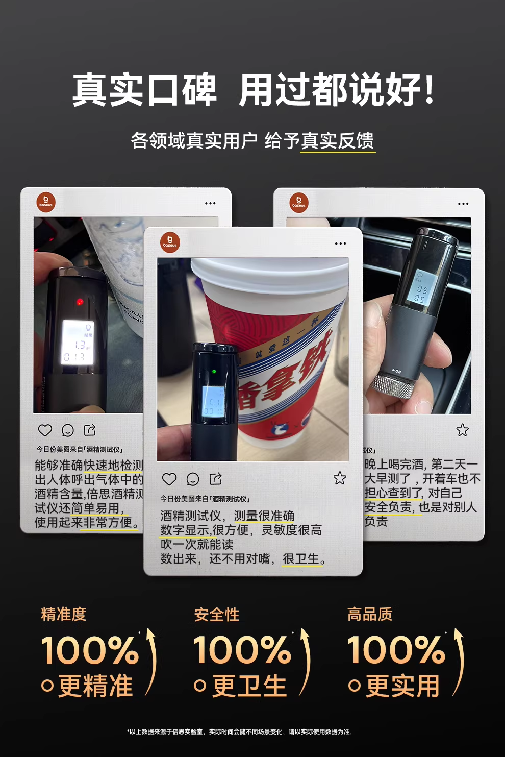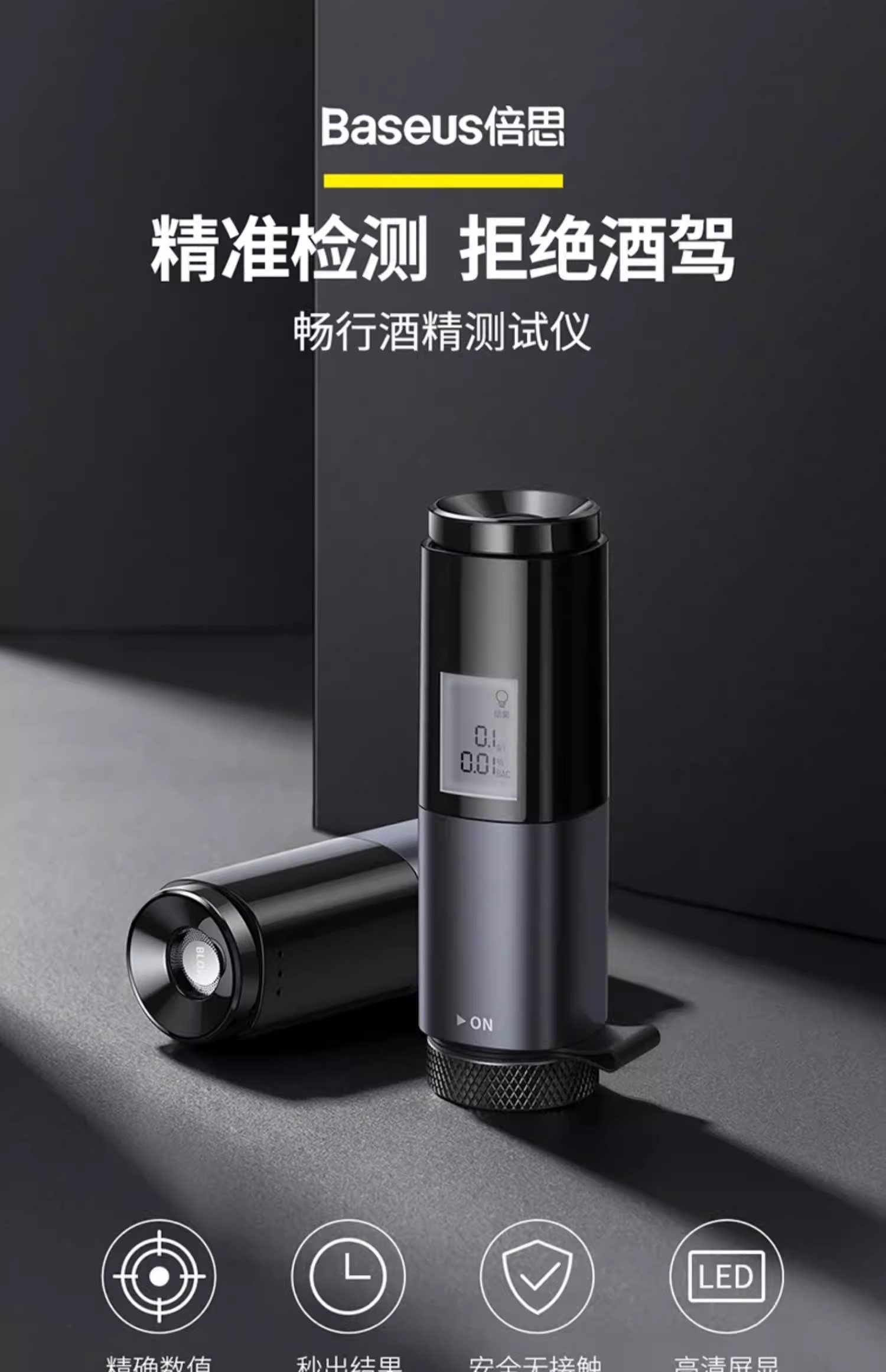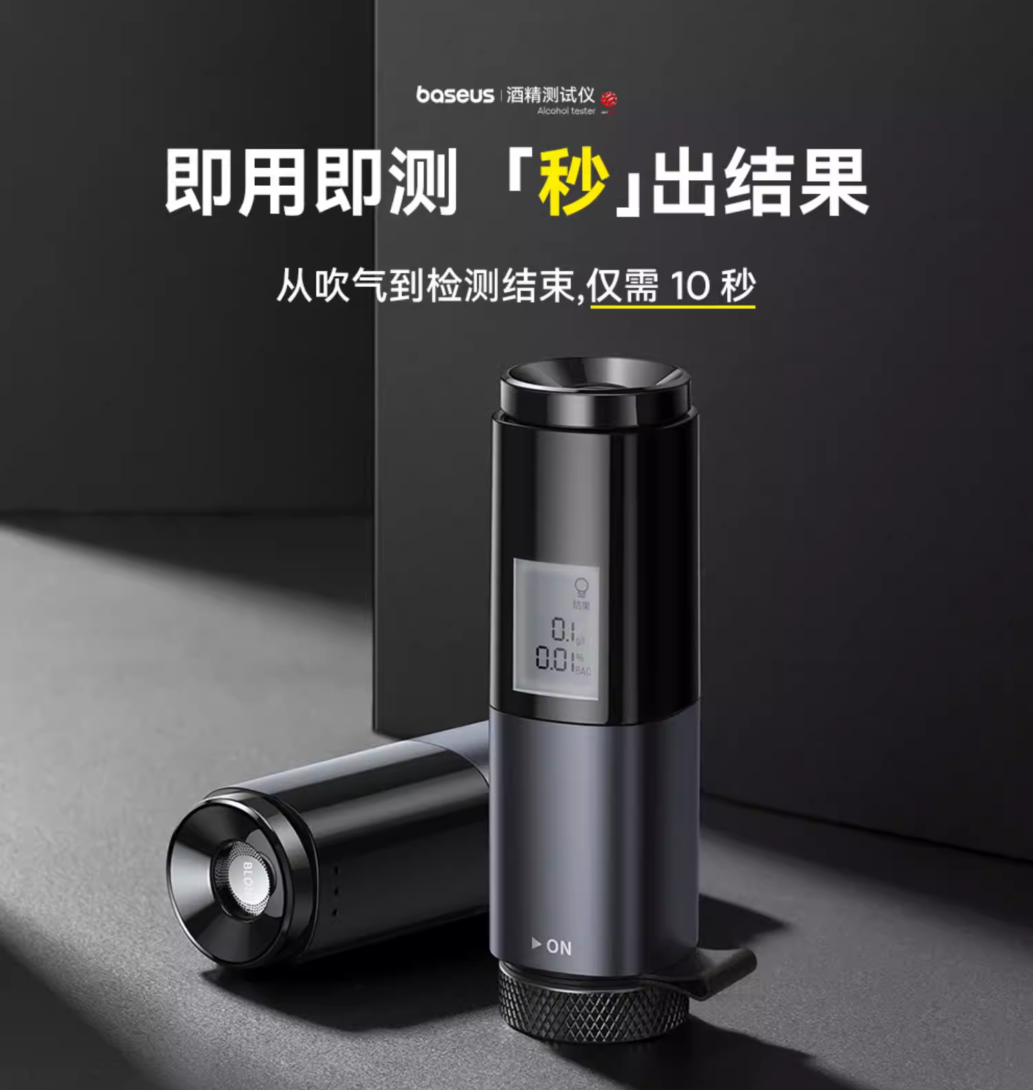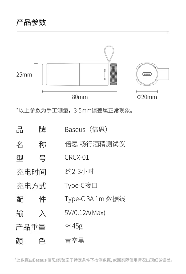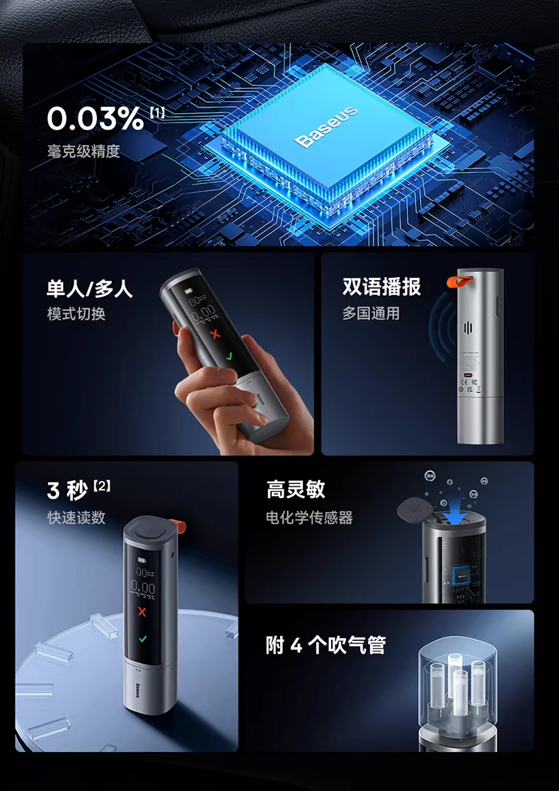 倍思 畅行酒精检测仪 CRCX-01青空黑 吹气家用 呼气式快速排查酒驾 交通专用便携式