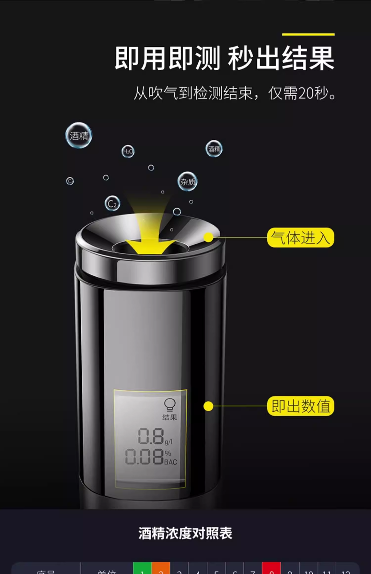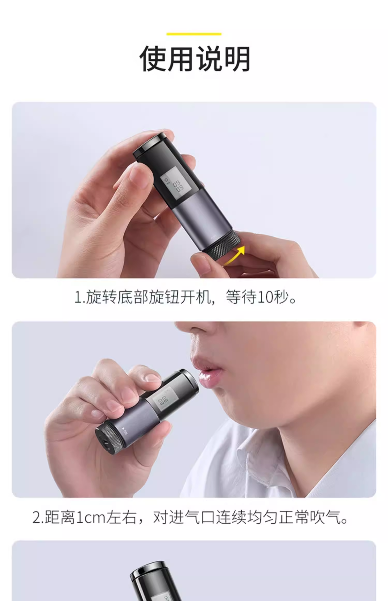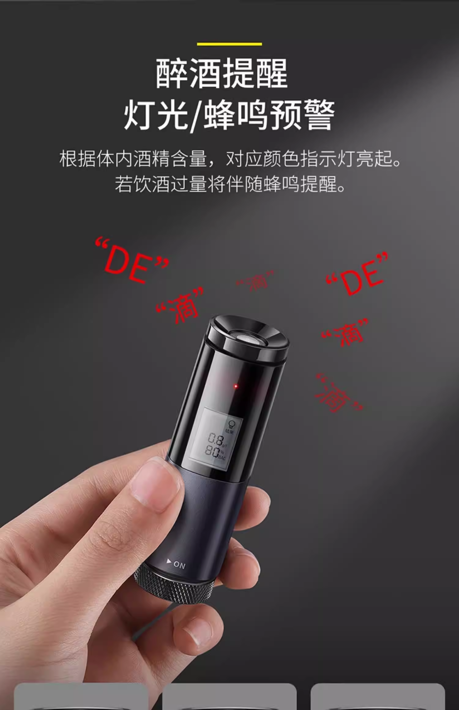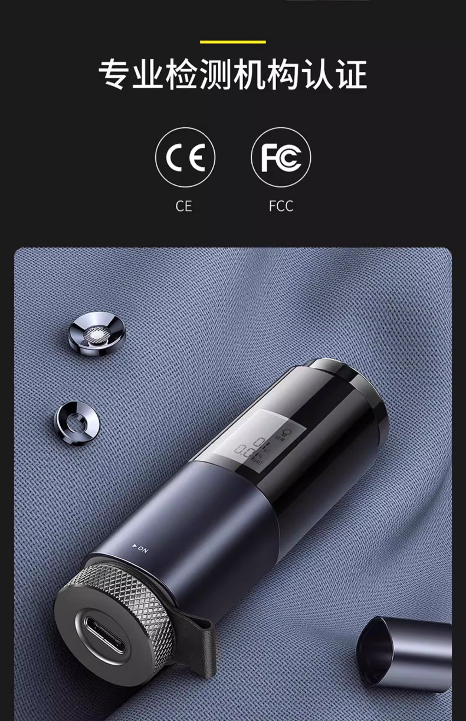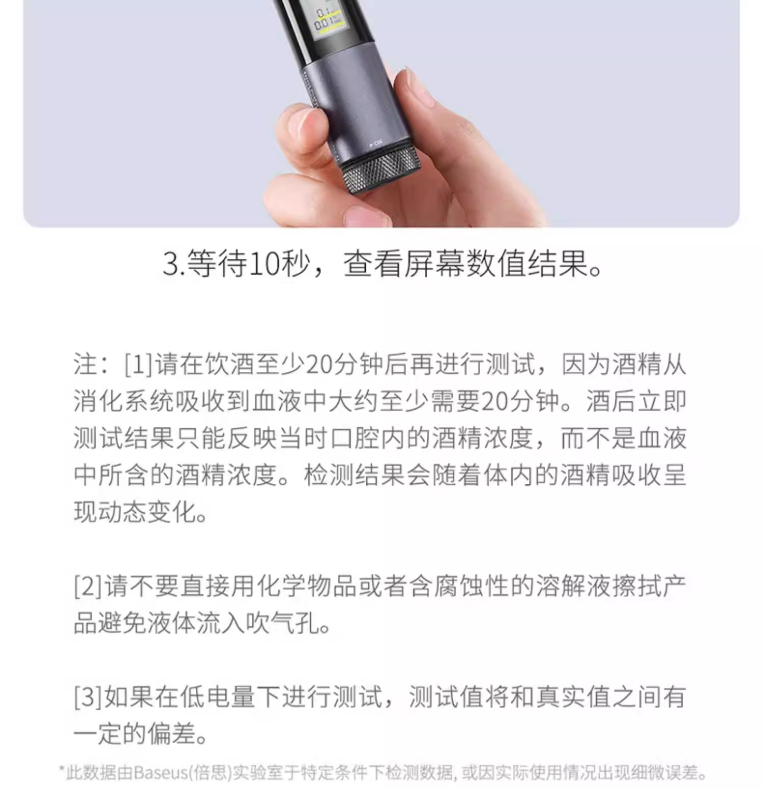 倍思 畅行酒精检测仪 CRCX-01青空黑 吹气家用 呼气式快速排查酒驾 交通专用便携式