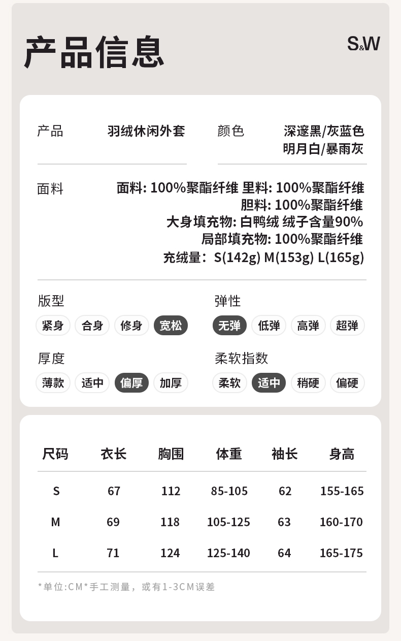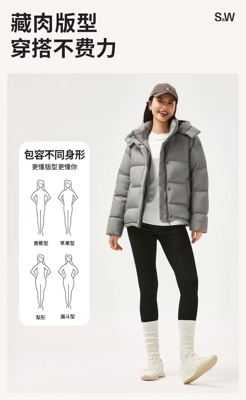 【sw速惟】加厚保暖白鸭绒秋冬连帽运动羽绒服1215B