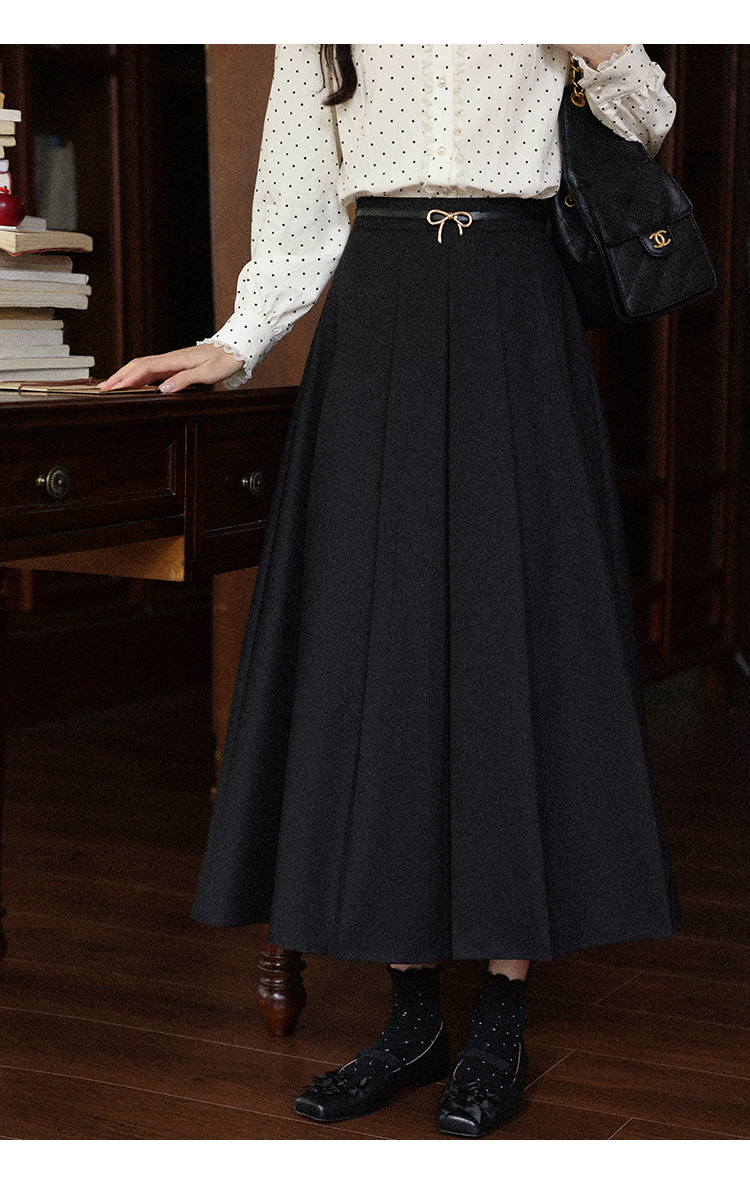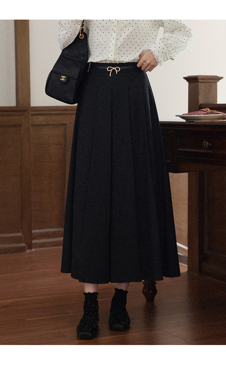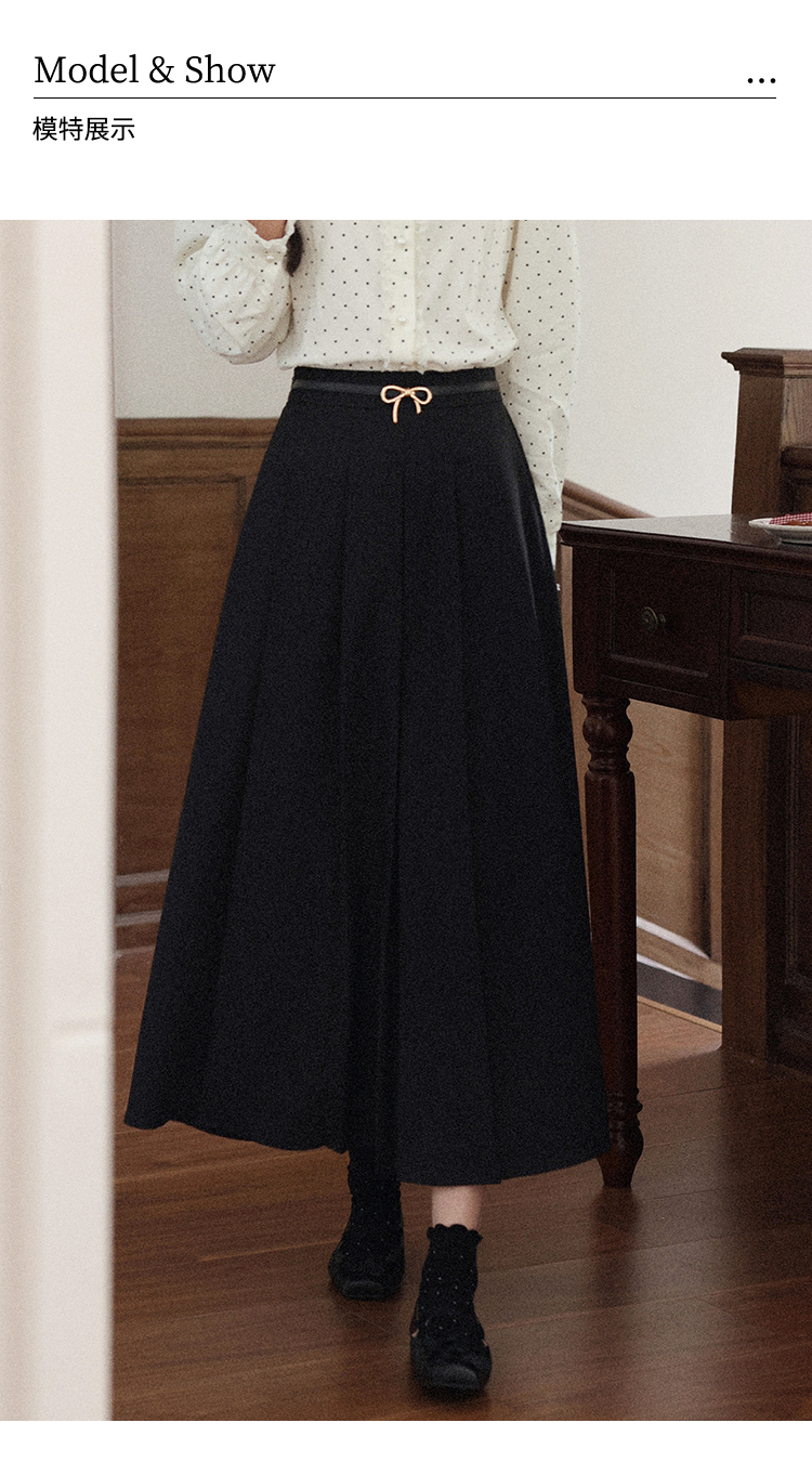 鹿向南「黑糖少女」高级感黑色A字半身裙女秋季中长款气质百褶裙