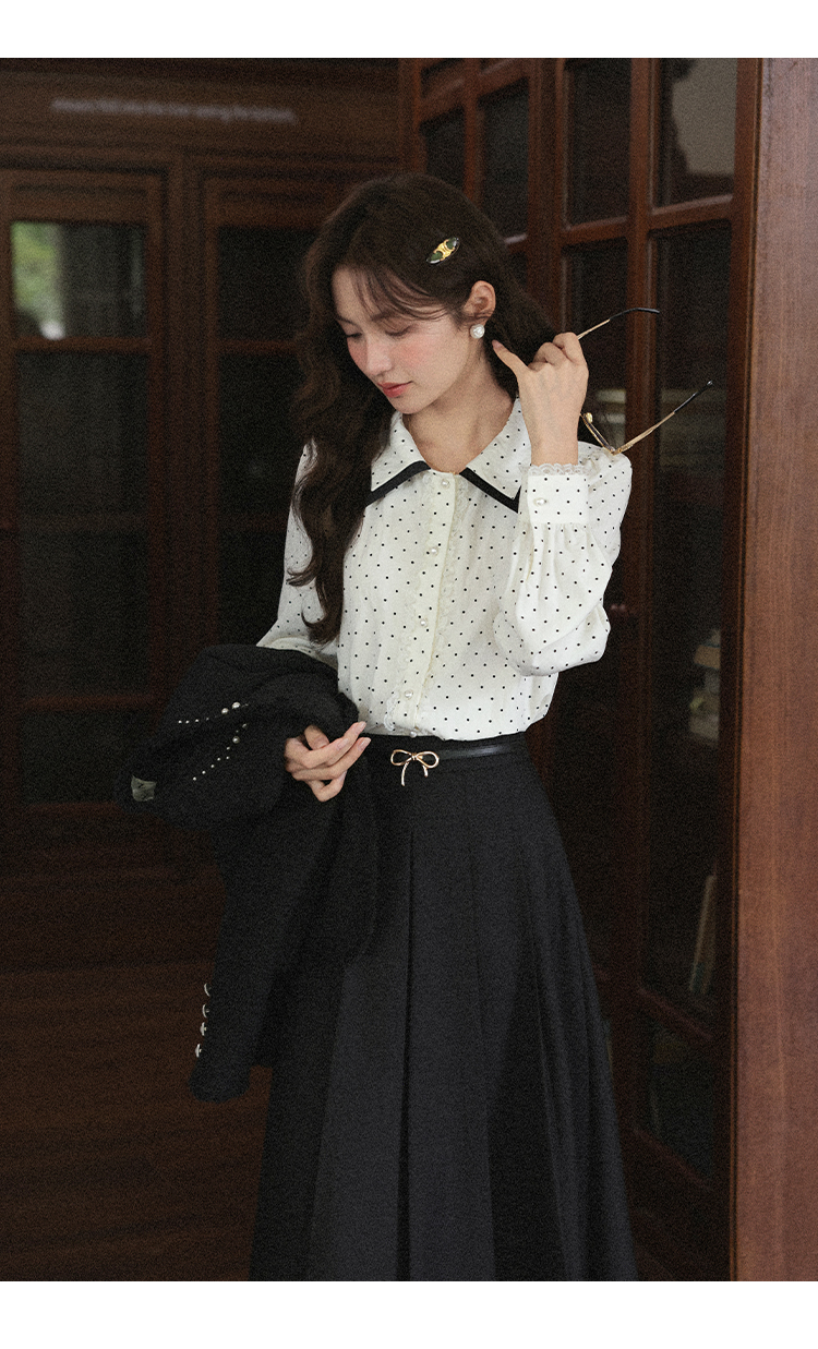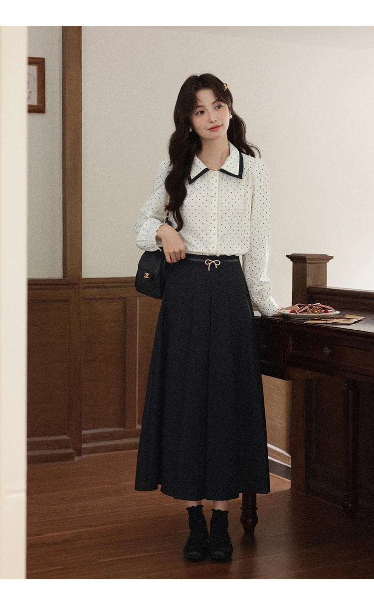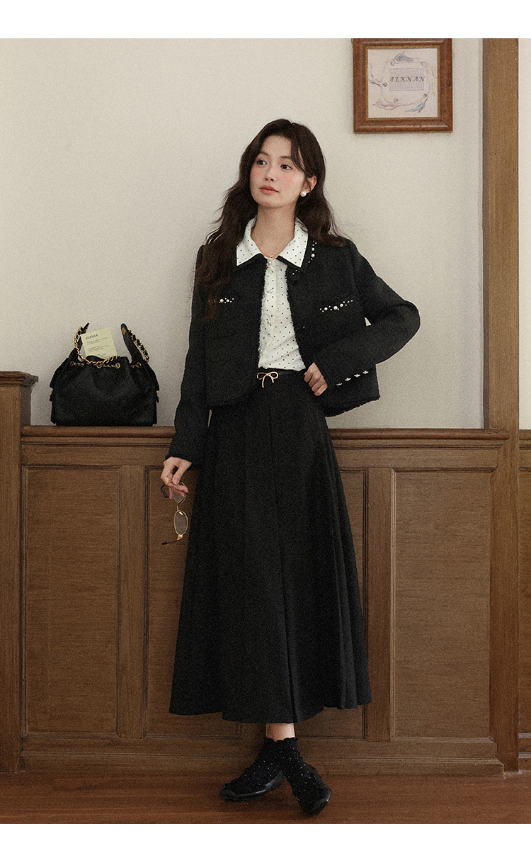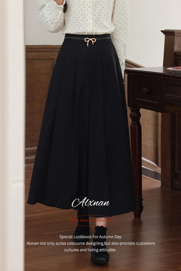 鹿向南「黑糖少女」高级感黑色A字半身裙女秋季中长款气质百褶裙