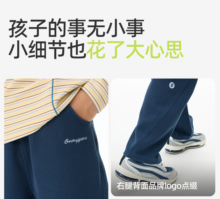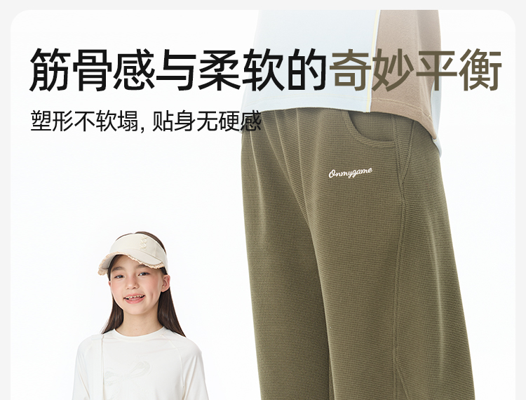 onmygame【Aero Waffle】男女童空气感长裤抗皱弯刀裤25年秋季新款