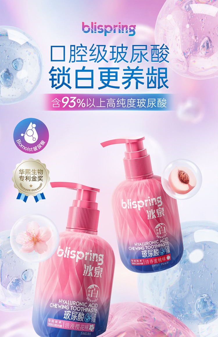 冰泉220g玻尿酸口香牙膏(清香蜜桃味)