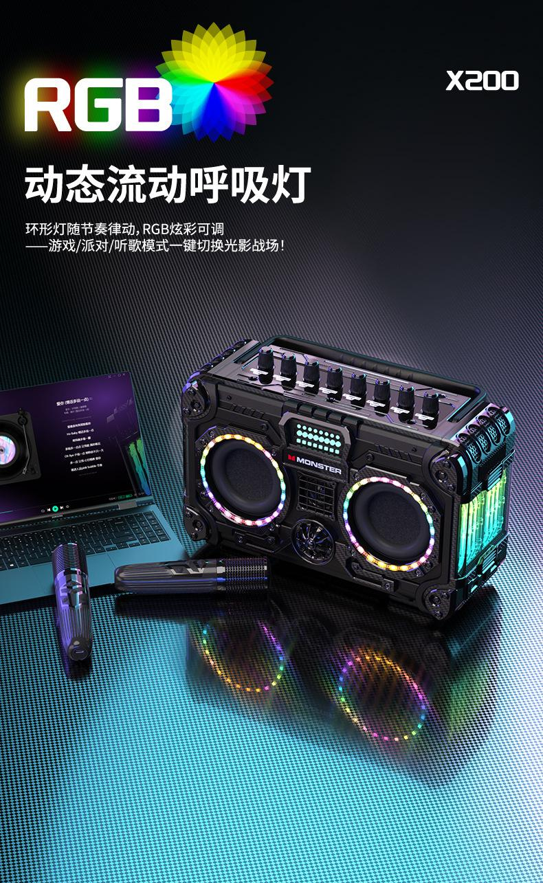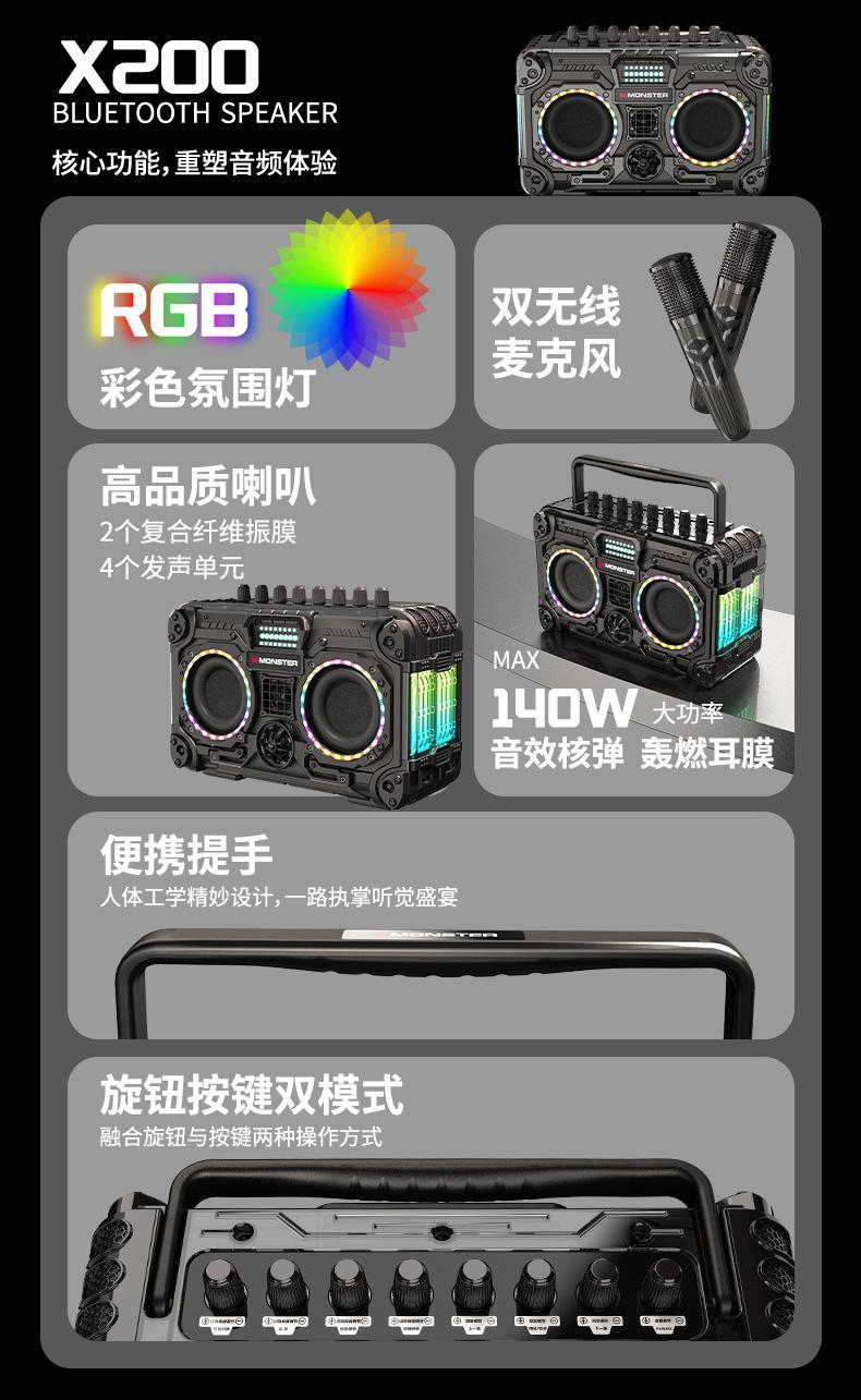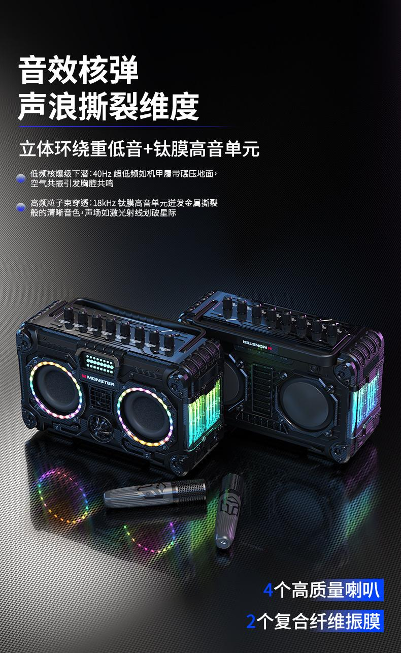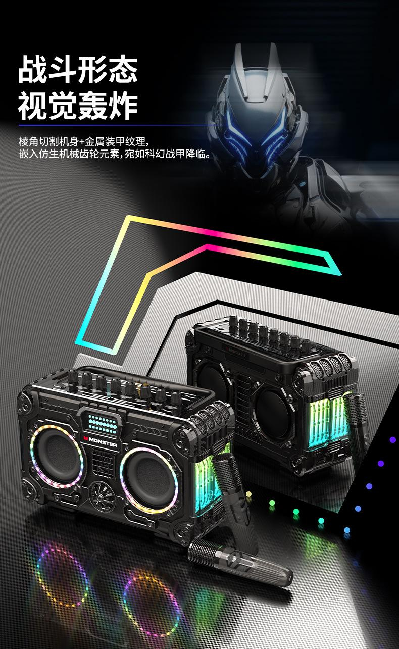 Monster魔声 机甲风蓝牙K歌音响 配无线麦克风 BLASTER X200