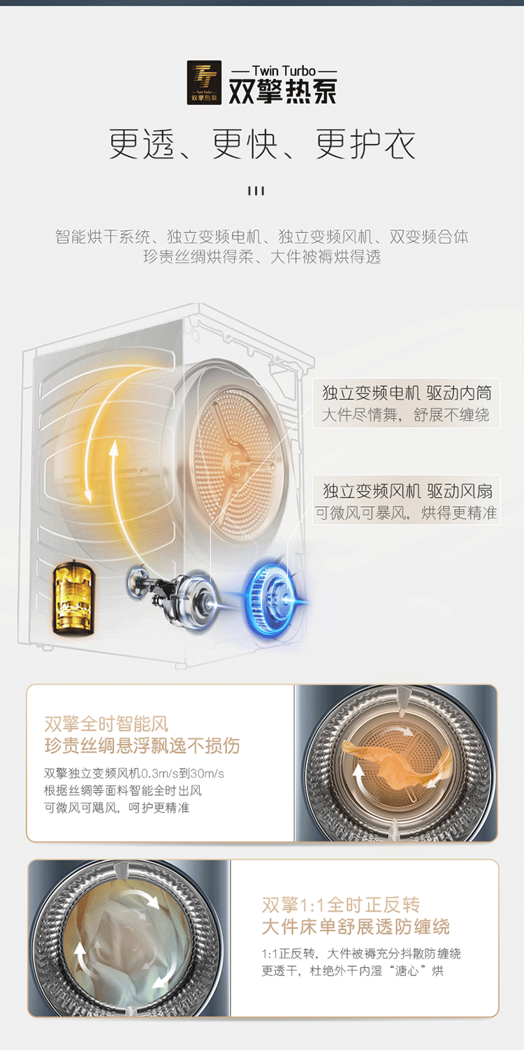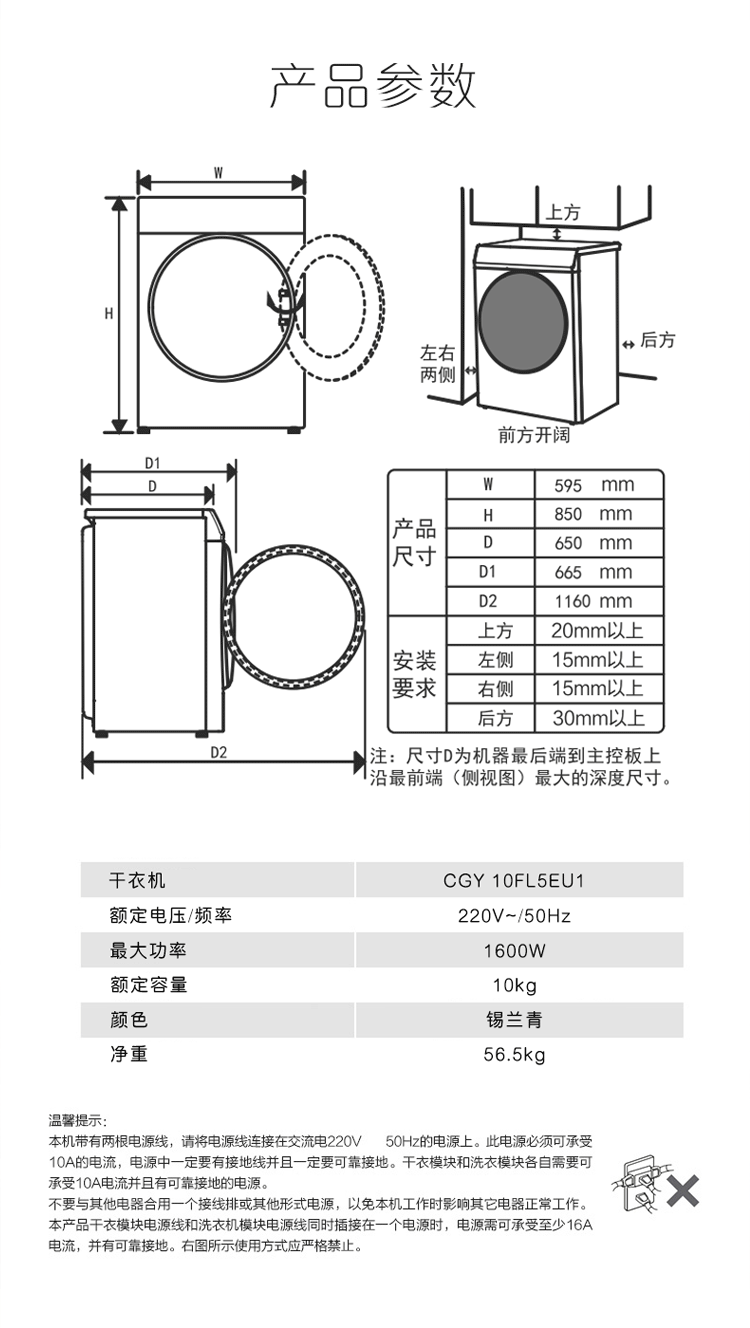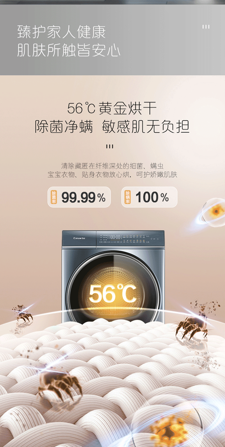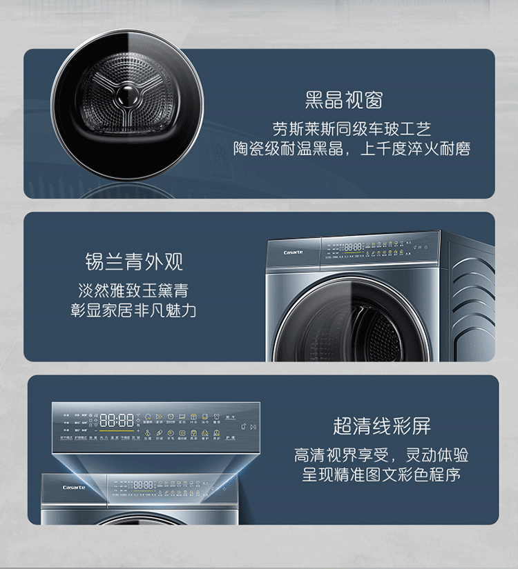卡萨帝(Casarte)10公斤变频干衣机双擎热泵烘干护理衣物除菌净螨空气洗 锡兰青 CGY 10FL5EU1