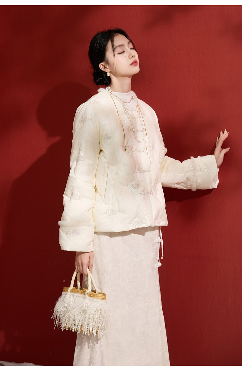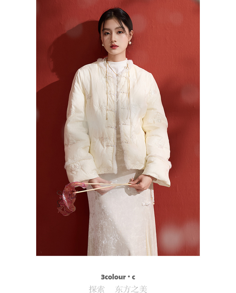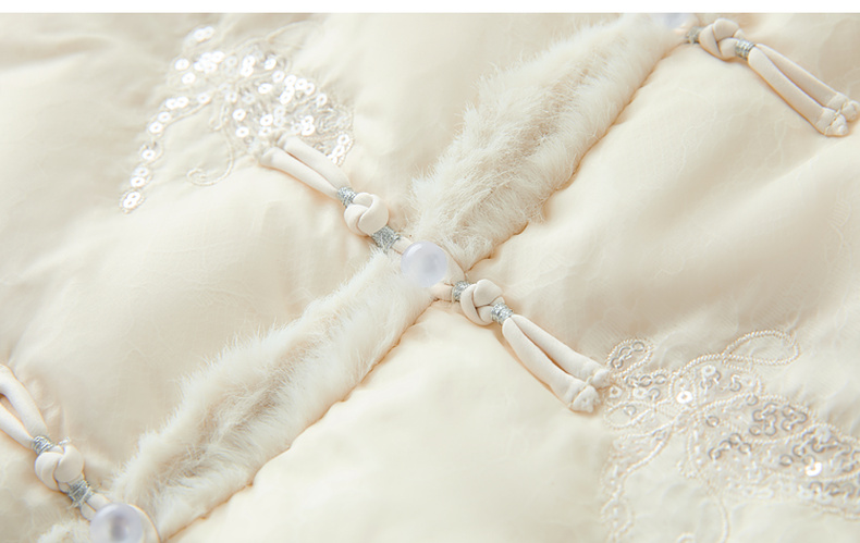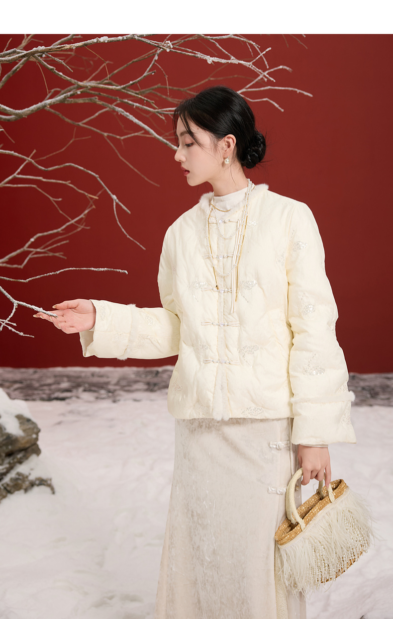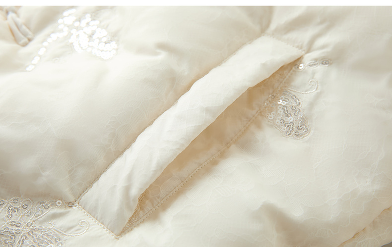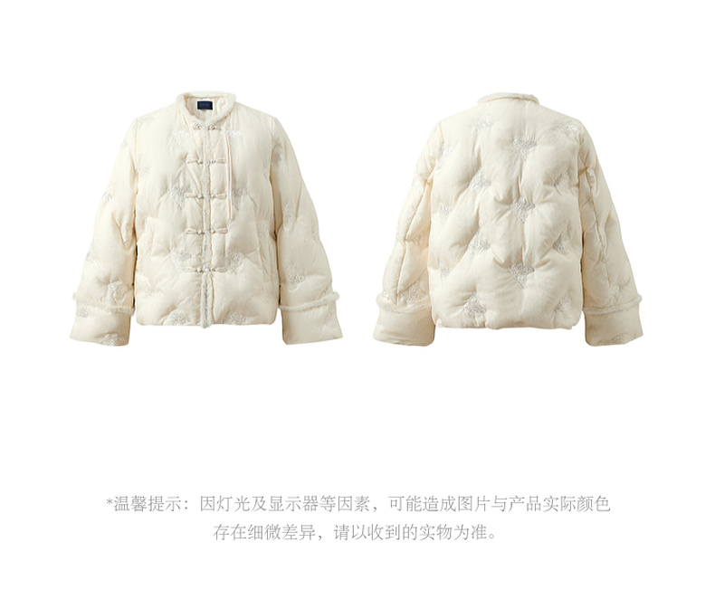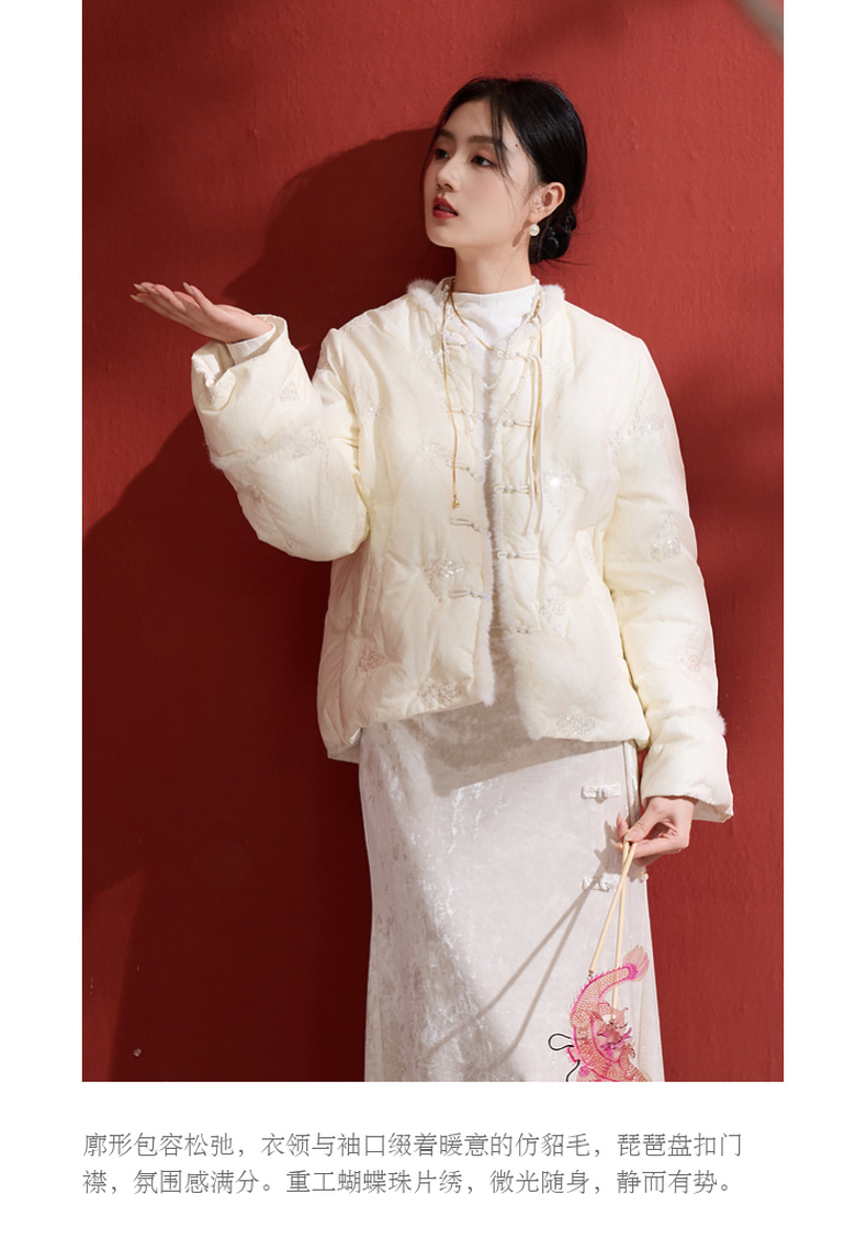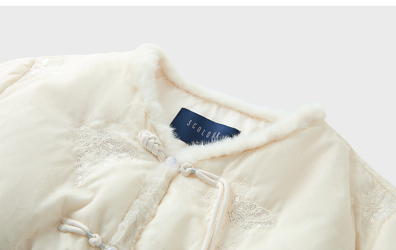 三彩【素锦浮光】2025冬季新款90白鸭绒羽绒服宽松短款珠片绣C