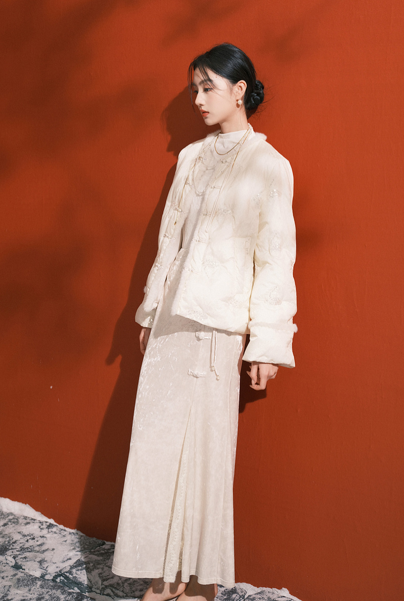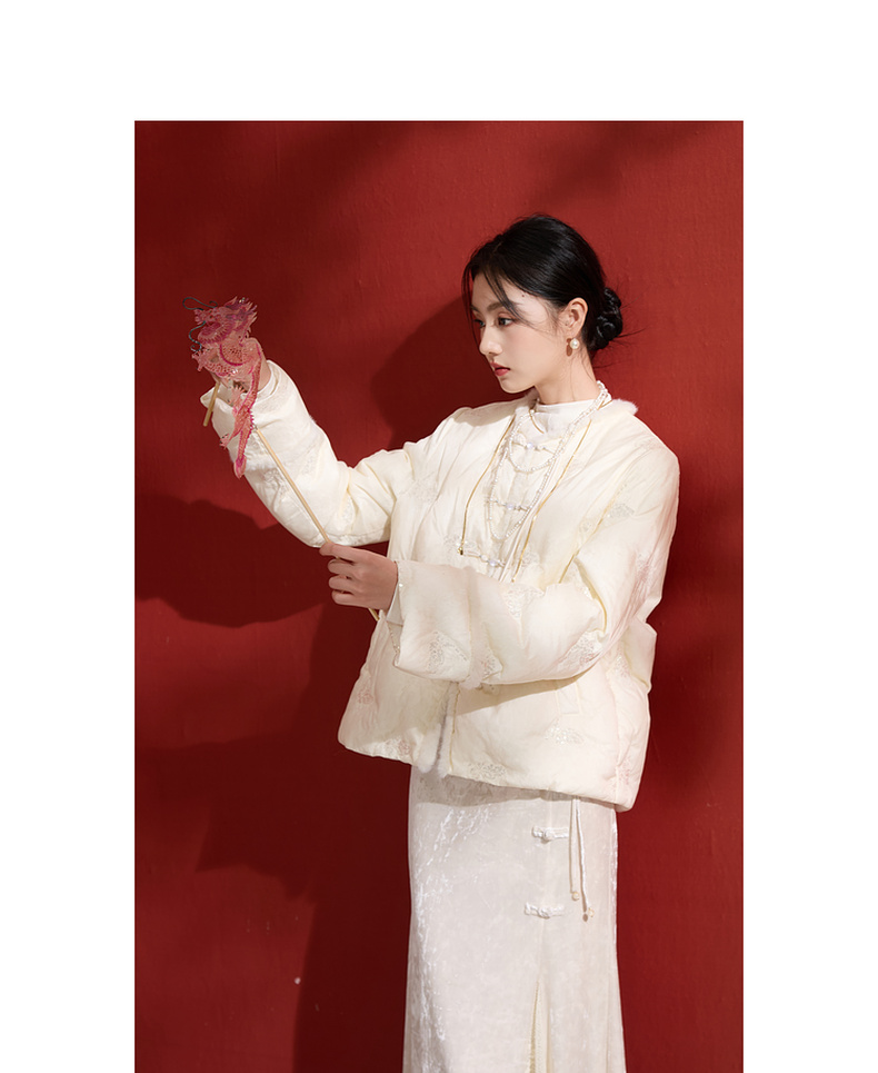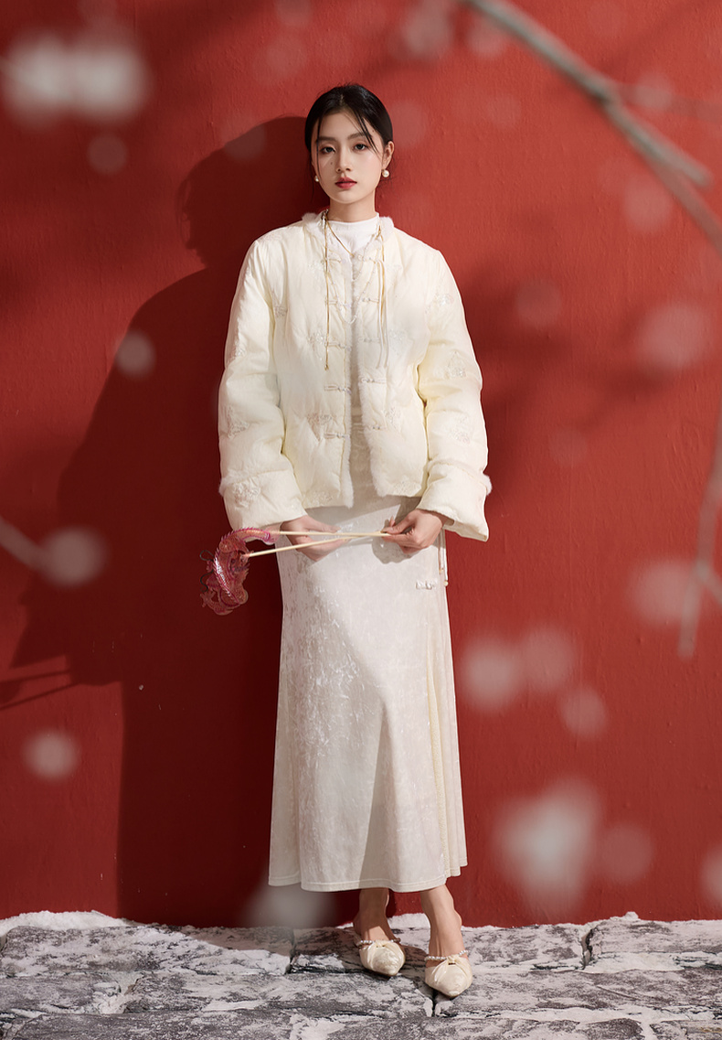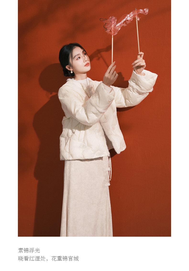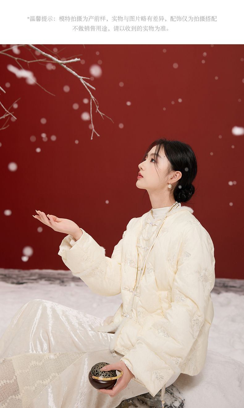 三彩【素锦浮光】2025冬季新款90白鸭绒羽绒服宽松短款珠片绣C