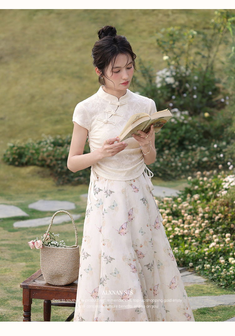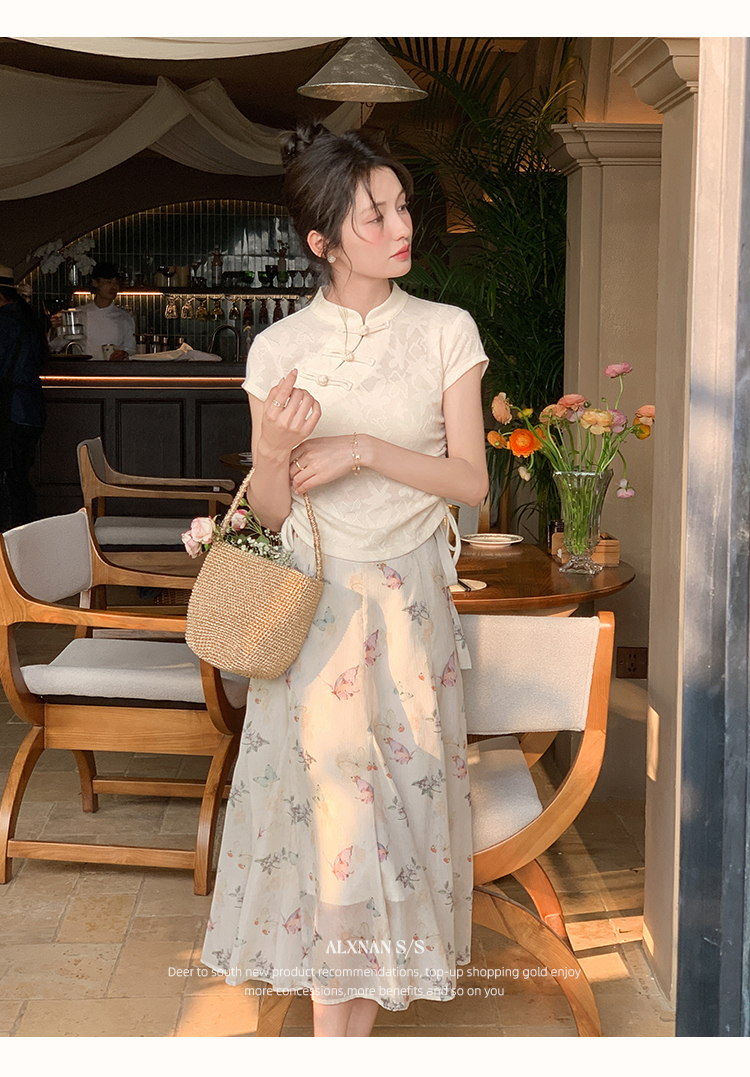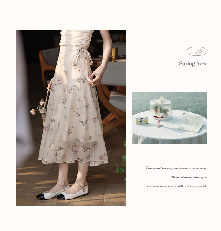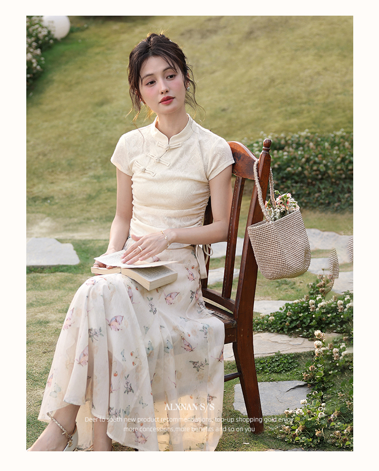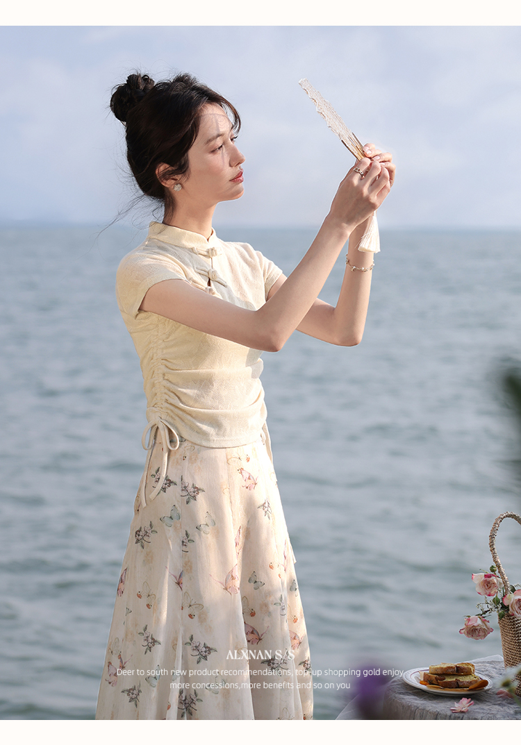 鹿向南「浮云织梦」杏色印花新中式半身裙女2025夏设计感a字长裙