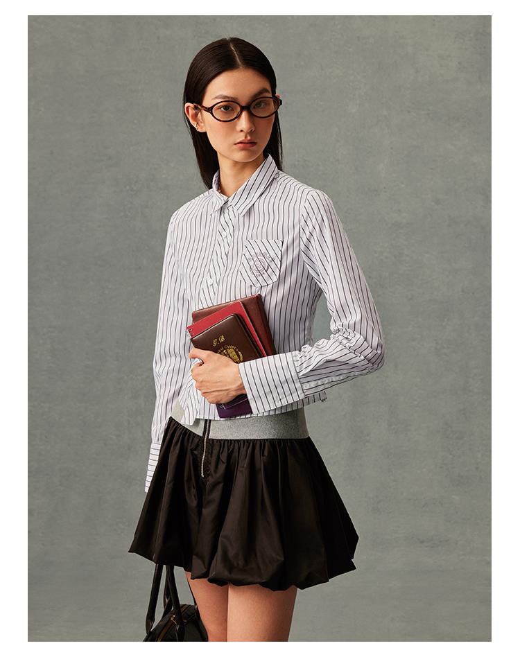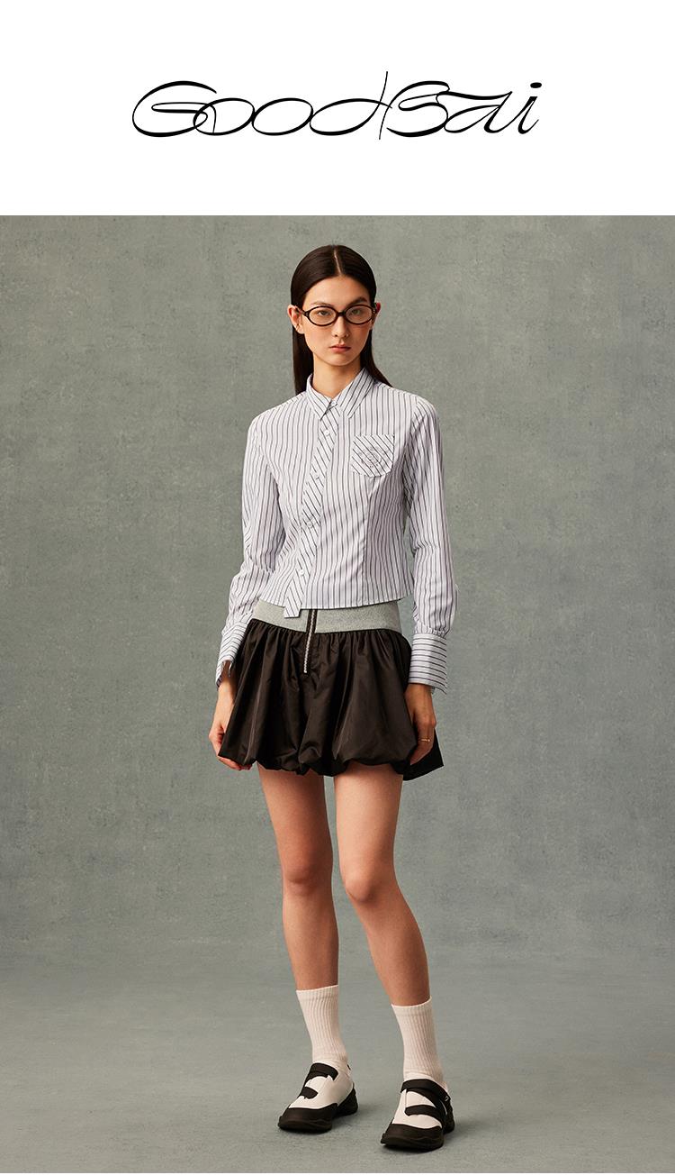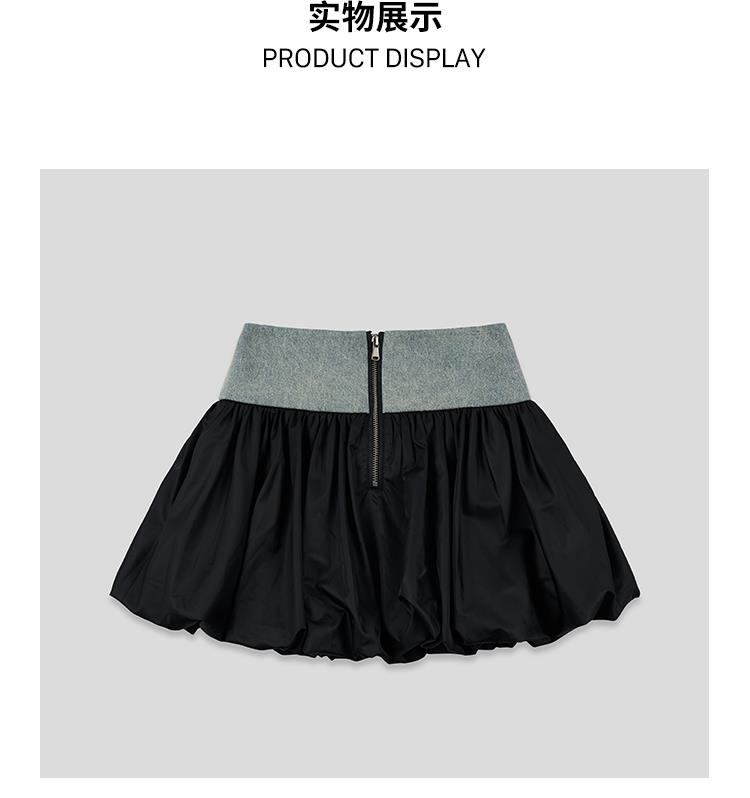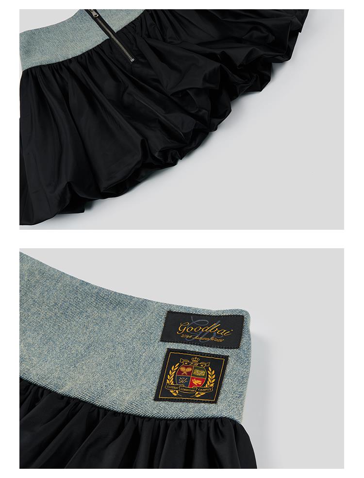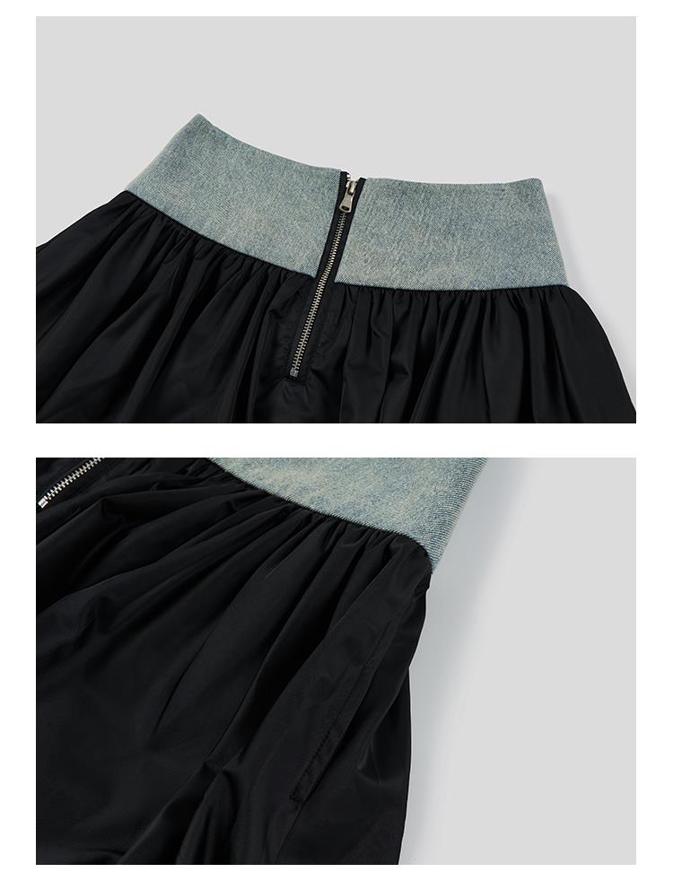 GOODBAI 拼接拉链双层褶皱半身短裙